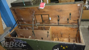1 Stück Holz, 2.100 x 650 x 631, mit Einbauten und Halterungen.