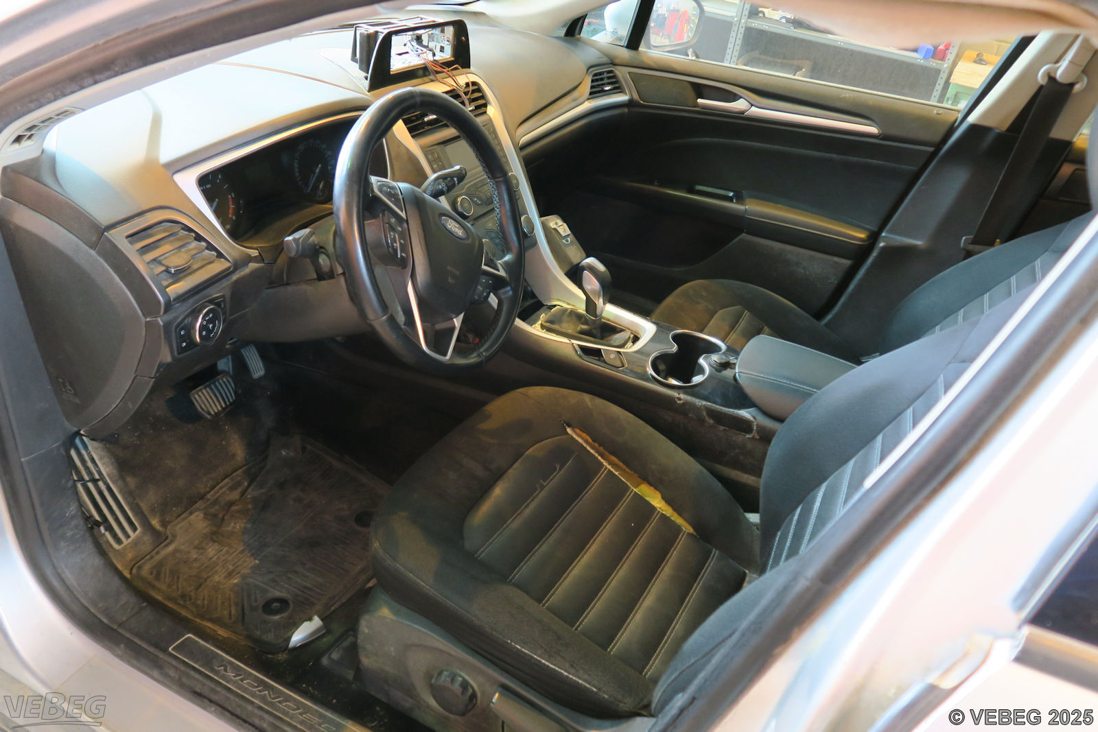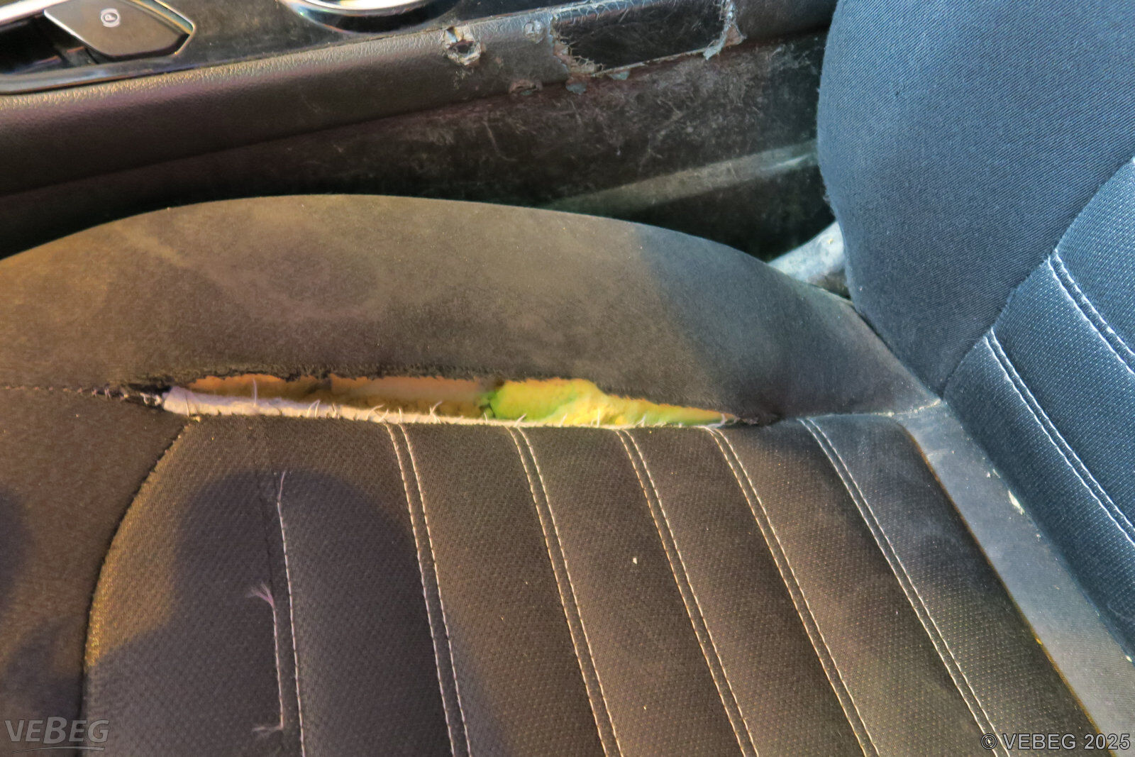Getriebeschaden, Turbolader und Wasserpumpe erneuerungsbedürftig, rundum Anfahrschäden, Ausbauspuren Funkanlage, Lackschäden und Klebereste durch Folienentfernung, Innenausstattung starke Gebrauchsspuren und Verschmutzungen, Abdeckung Fahrertürschloss fehlt, Fahrersitzpolster defekt, alters- und nutzungsbedingter Verschleiß.