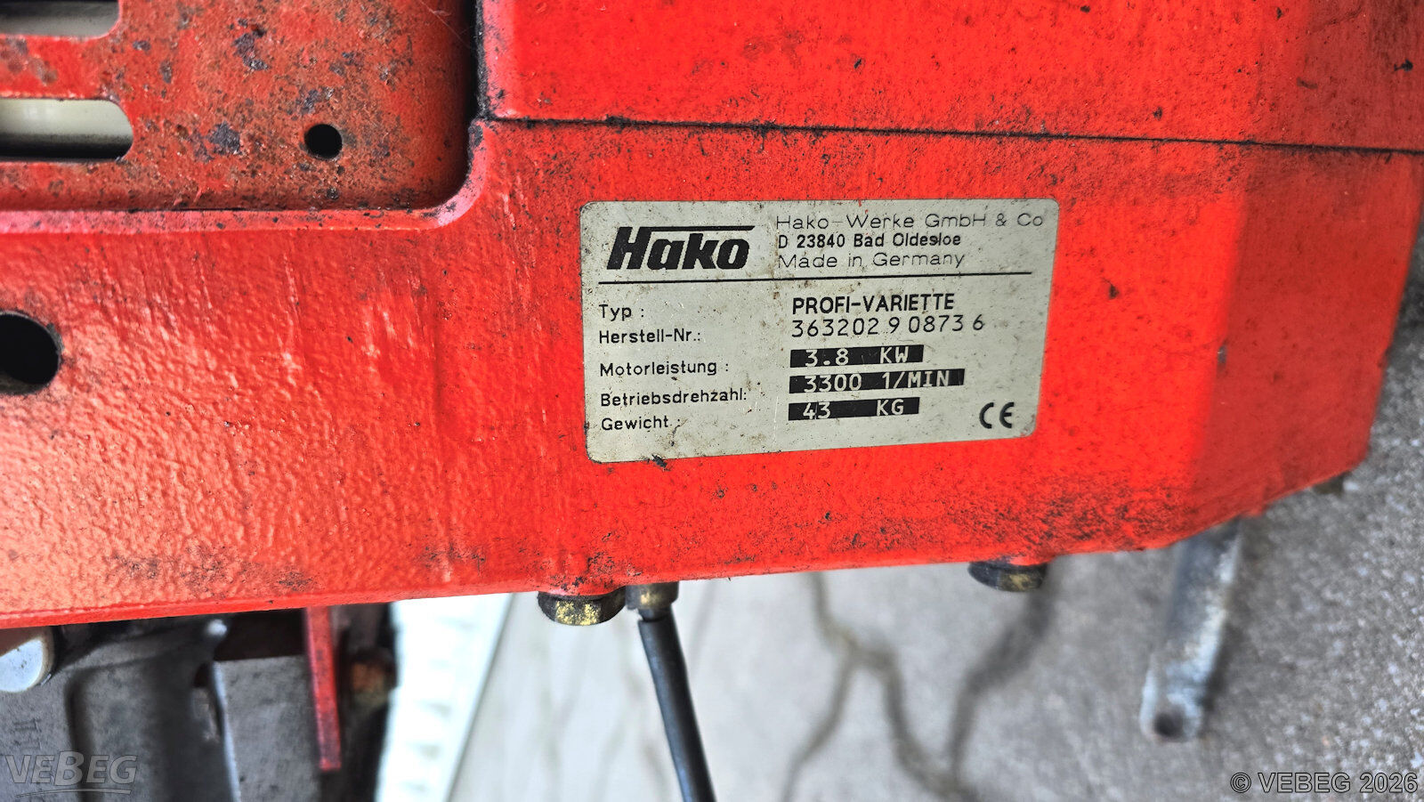S/N 363202908736; 3.300 1/min, 3,8 kW, mit Kehr- und Mähwerk;