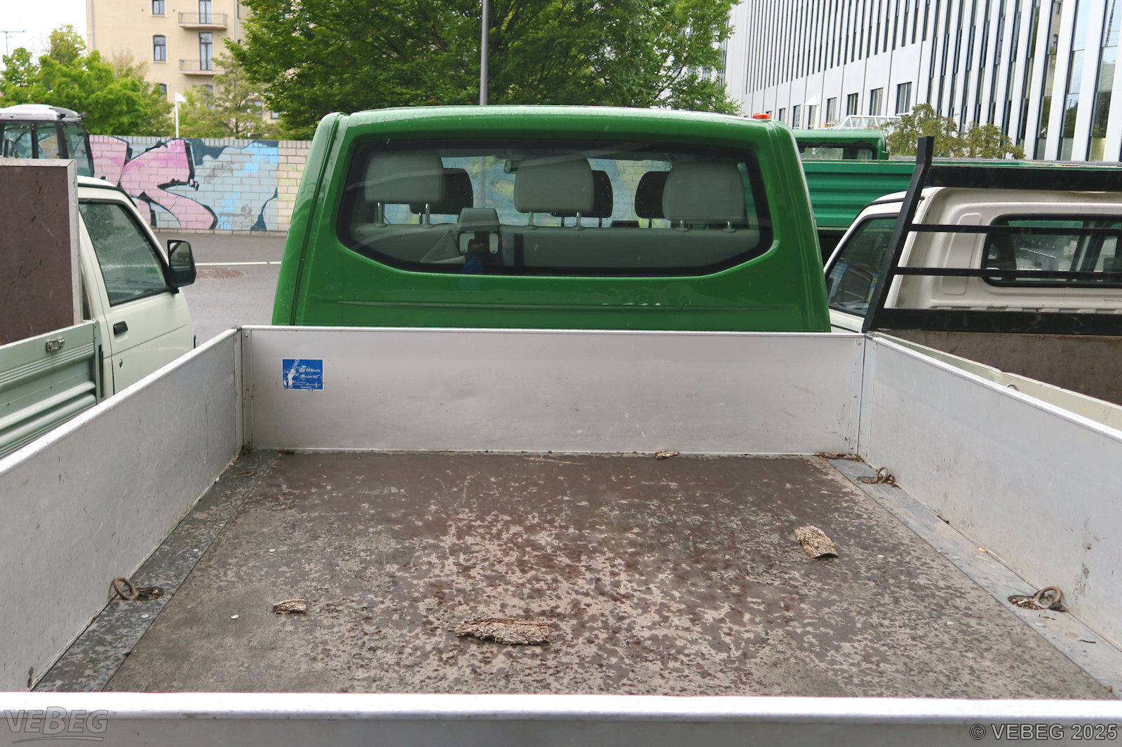 Motor undicht, Motorstörungssymbol leuchtet dauerhaft, Kupplungsnehmerzylinder defekt, Schweller links eingedrückt, Ladebordwände deformiert, Kotflügel links beschädigt, Stoßfänger vorne rechts Anfahrschaden, diverse Verkleidungen lose, Bodenbelag hinten beschädigt, Lackschäden durch Folienentfernung, rundum Kratzer und Dellen, starke Gebrauchsspuren, Korrosionsschäden, alters- und nutzungsbedingter Verschleiß, HU 11/26.