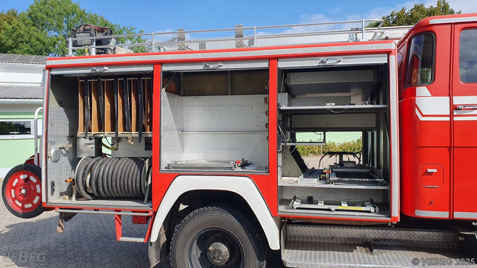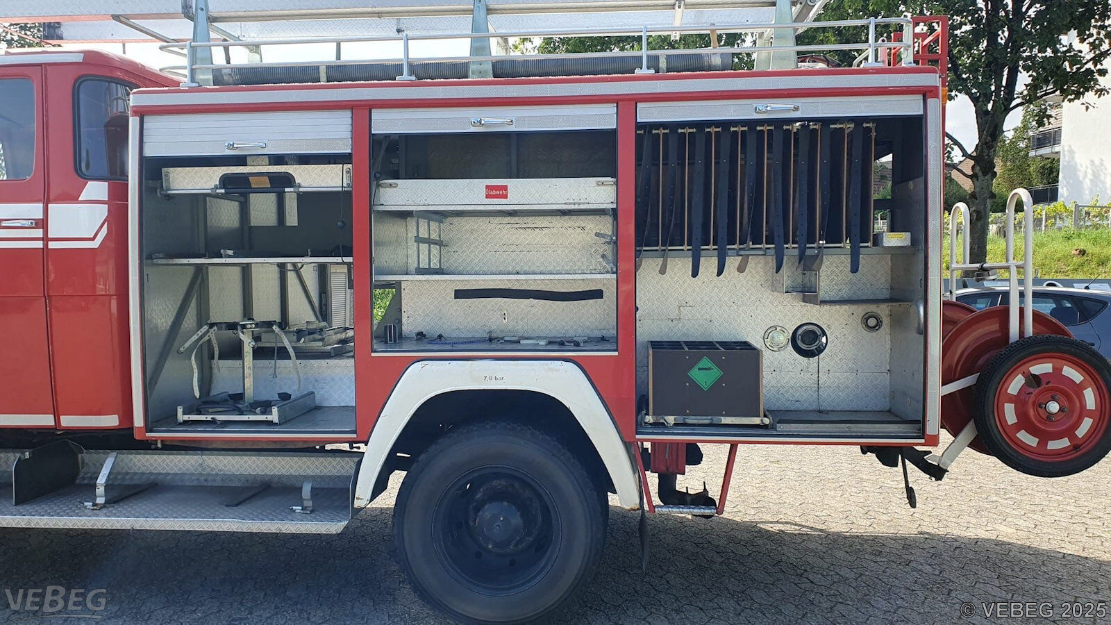 Motorleistung 141 kW; Doppelkabine, Kofferaufbau mit Rollläden, Heckeinbaupumpe FP 16/8, Schlauchhaspel ohne Schlauch; ohne feuerwehrtechnische Beladung;