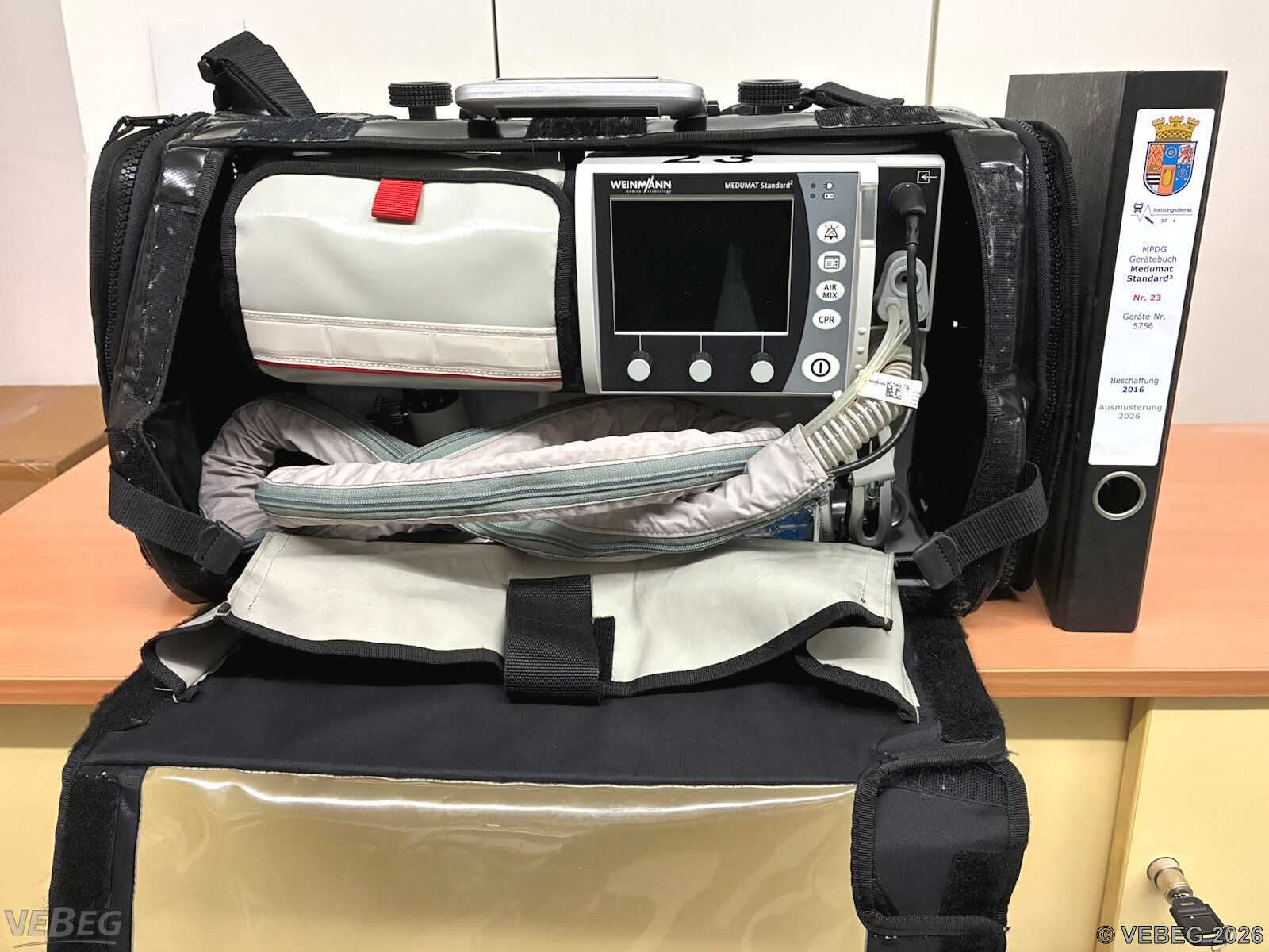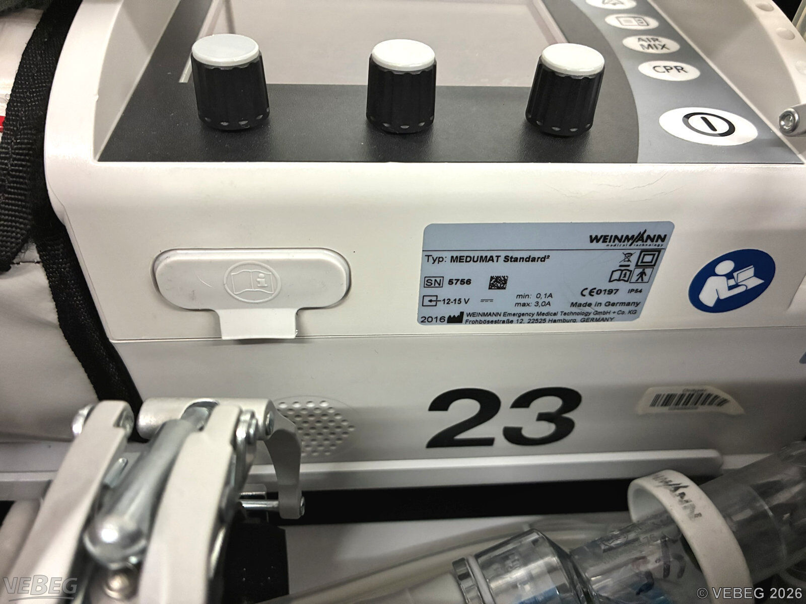 Baujahr 2016, S/N 5756; 12 - 15 V, 0,1 - 3,0 A, inklusive Beatmungsschlauch mit Druckminderer, Life-Base 3 und Tasche;