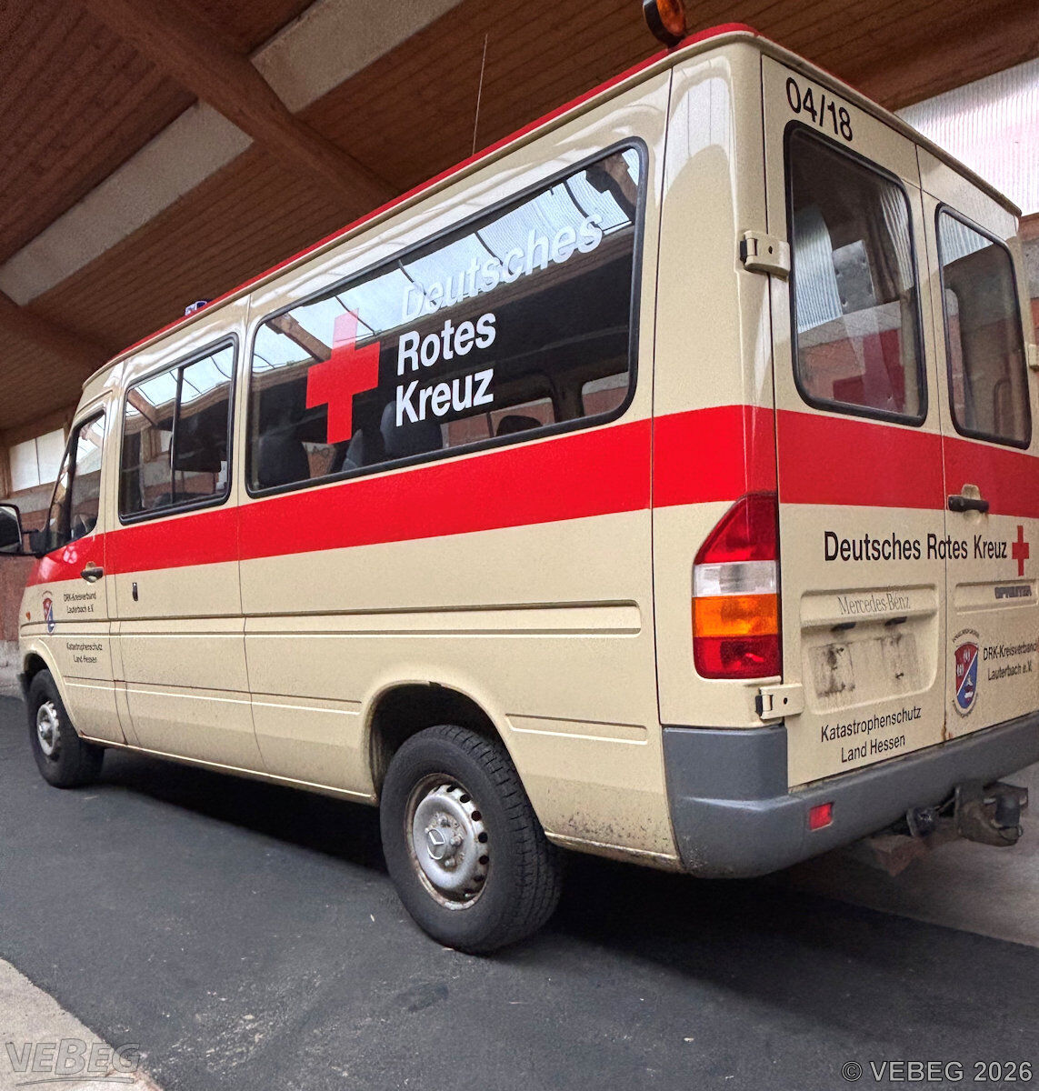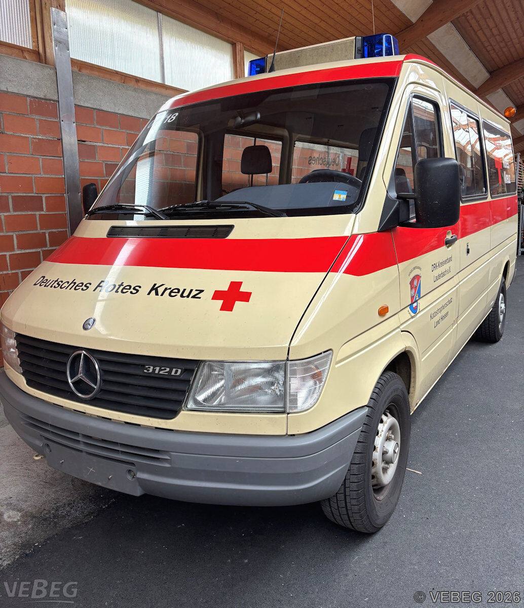 Hinweise: Vor Wiederzulassung zum öffentlichen Straßenverkehr müssen die umlaufenden roten Streifen (Tagesleuchtfarbe) sowie Rotkreuzkennzeichnung entfernt werden. Fahrzeug war im Kurzstreckenbetrieb eingesetzt.