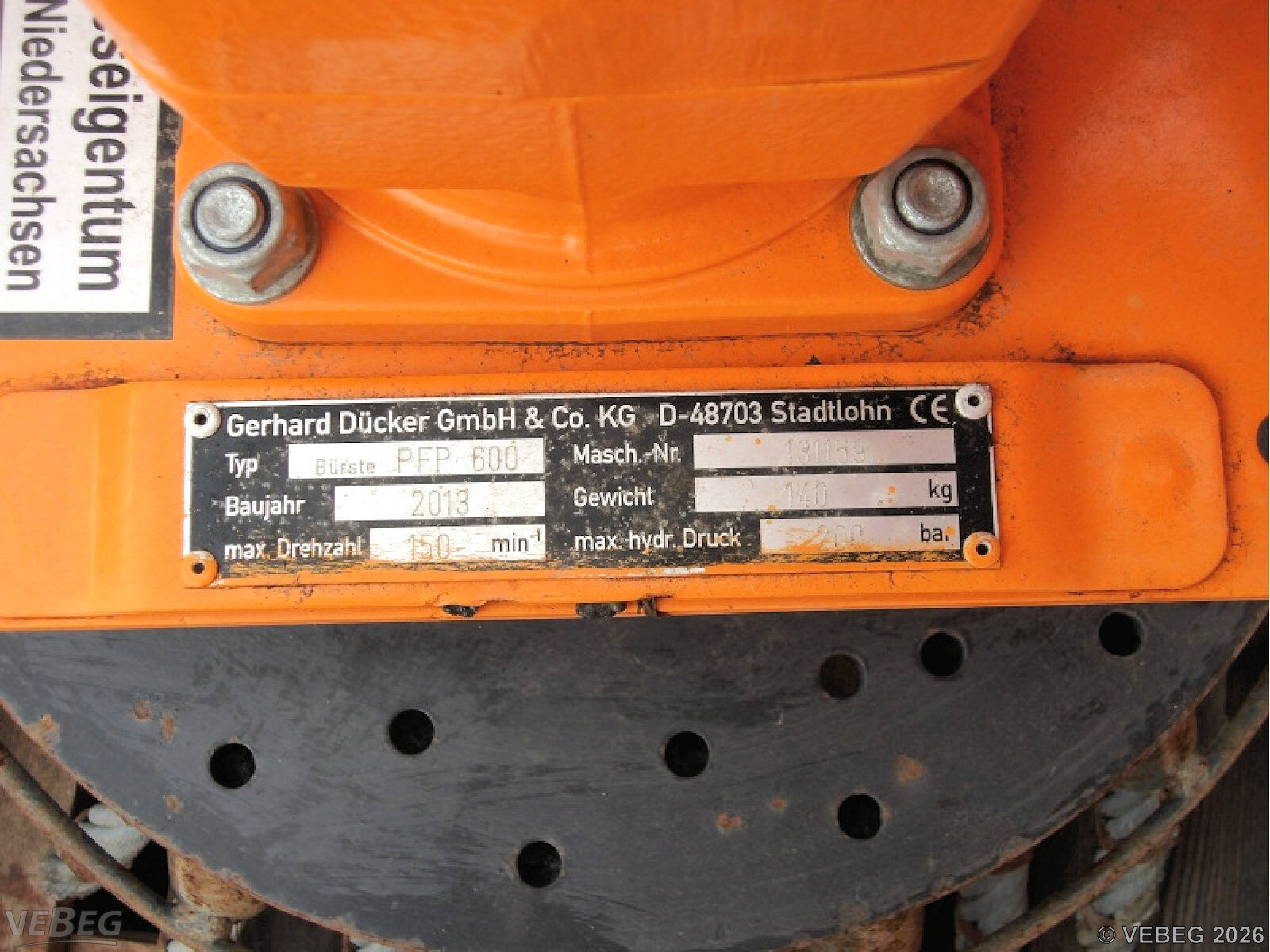 Baujahr 2013, S/N 131159; Drehzahl max. 150 1/min.