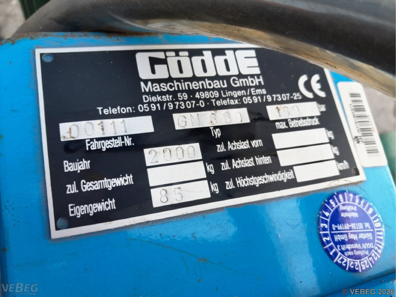 Baujahr 2000, S/N 00111; max Betriebsdruck 160 Bar.