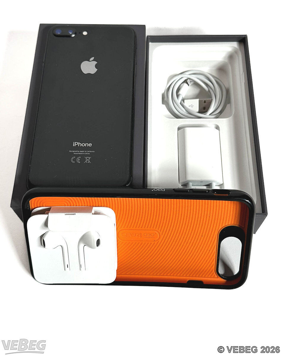 Erscheinungsjahr 2017; Display 4,7 Zoll, 64 GB, Betriebssystem iOS16, Farbe: schwarz, iPhones auf Werkseinstellung zurückgesetzt, keine Aktivierungssperre, Anschluss: USB Lightning Connector, Wireless Charging, mit OVP und Schutzhülle Gear4 D3o, Headset;