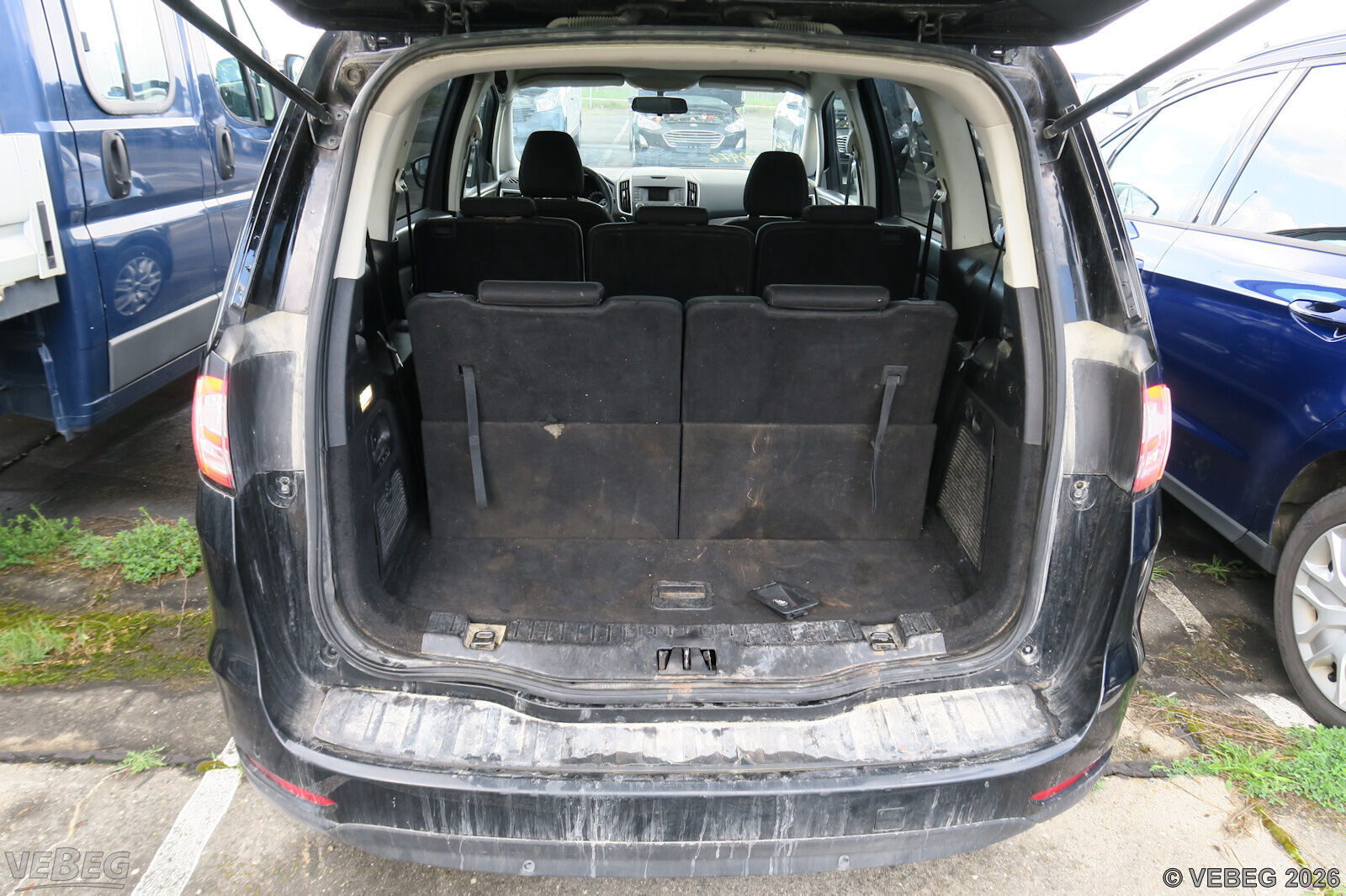 Stoßfänger hinten Anfahrschaden, Kratzer, Lackschäden, Laderaumabdeckung und Ford Emblem fehlt, alters- und nutzungsbedingter Verschleiß.