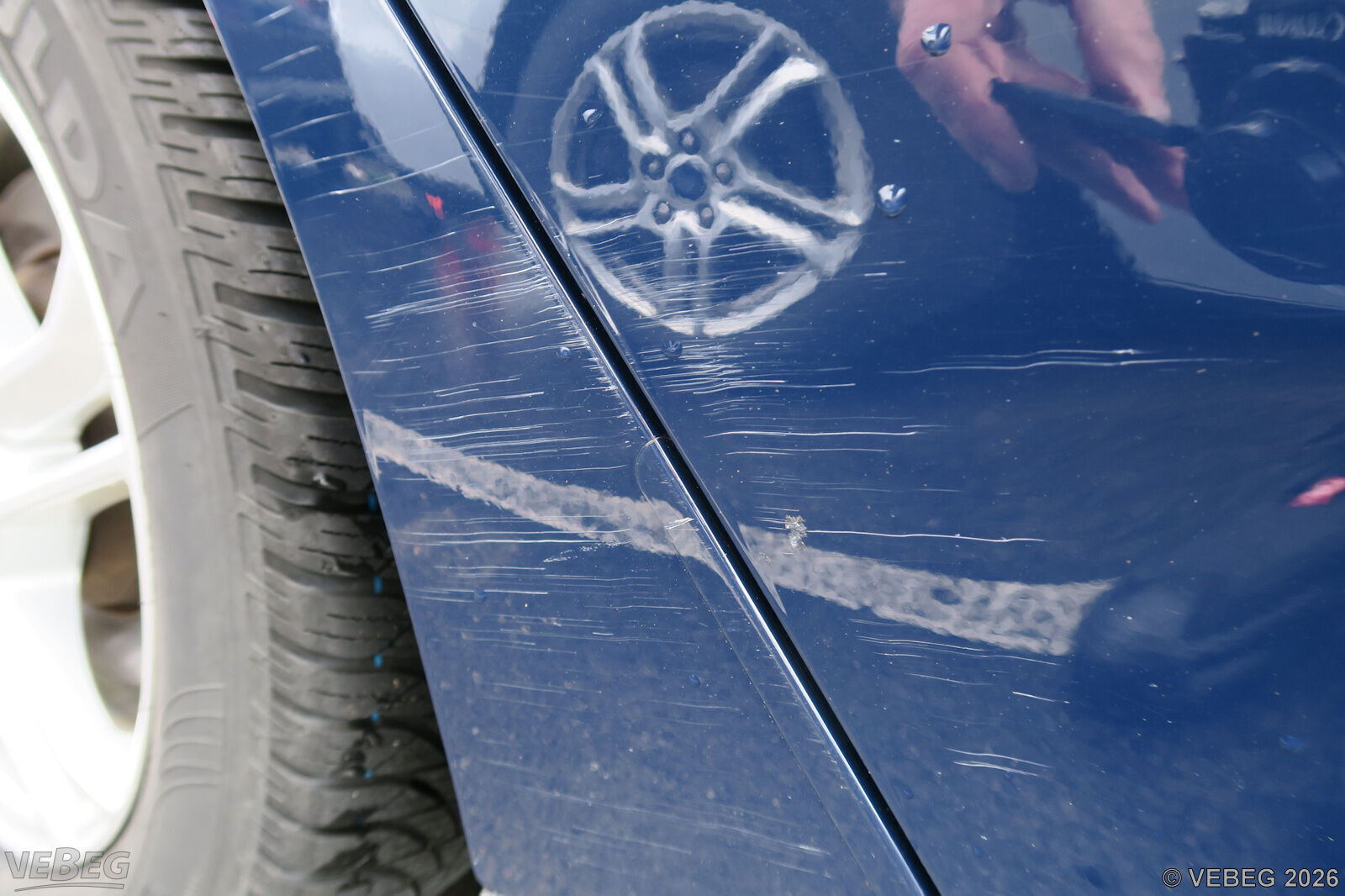 Stoßfänger vorn eingedrückt, Frontbereich Steinschlag, Streifschaden Seitenwand und Tür rechts, Stoßfänger hinten verschrammt, Kratzer, Dellen, Lackschäden, Gebrauchsspuren, alters- und nutzungsbedingter Verschleiß.