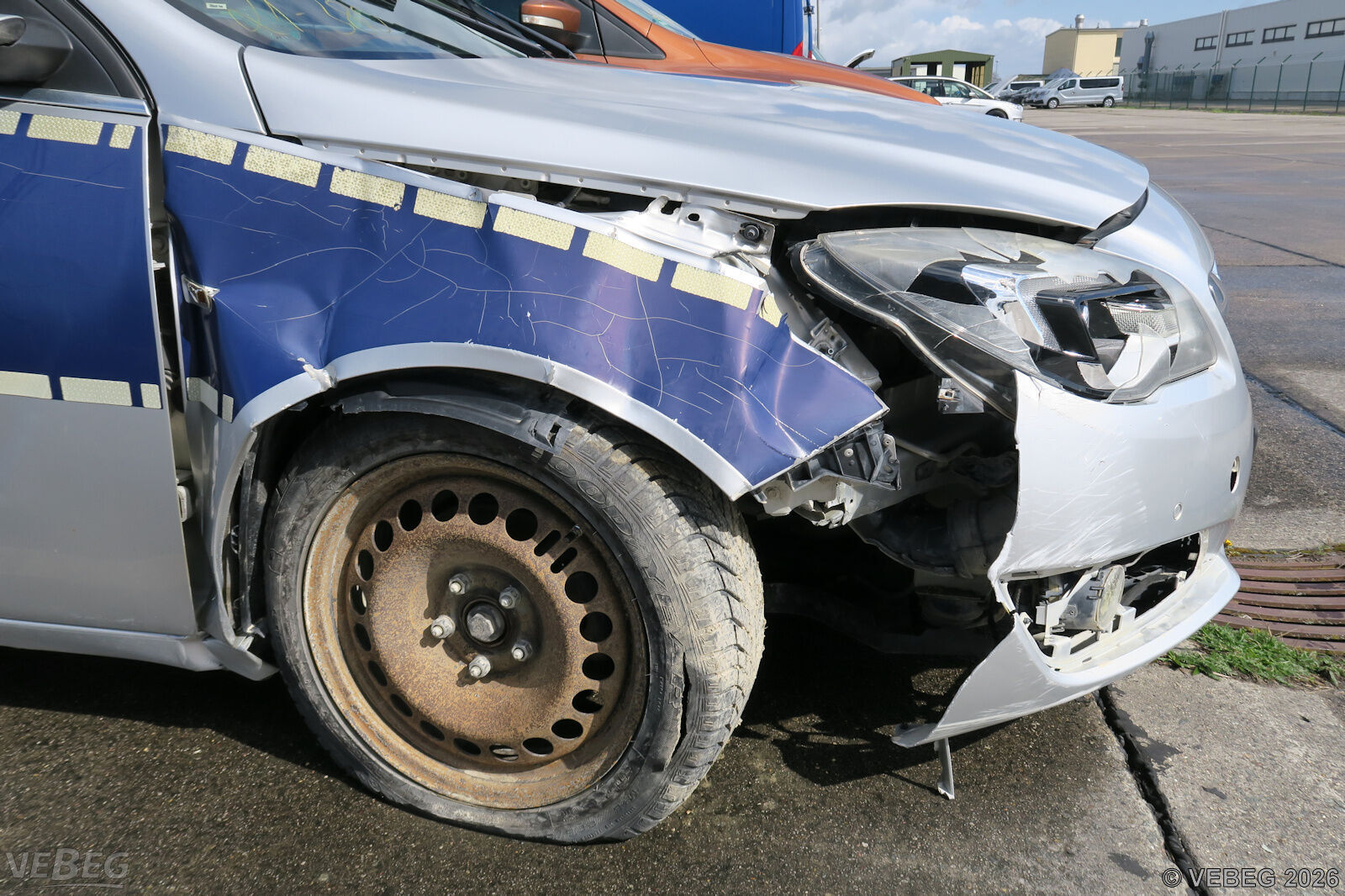 Unfallschaden im Frontbereich, Ausbauspuren Funk- und Zusatzausstattung, Lackschäden und Klebereste durch Folienentfernung, Innenraum verschlissen, starke Gebrauchsspuren, alters- und nutzungsbedingter Verschleiß.