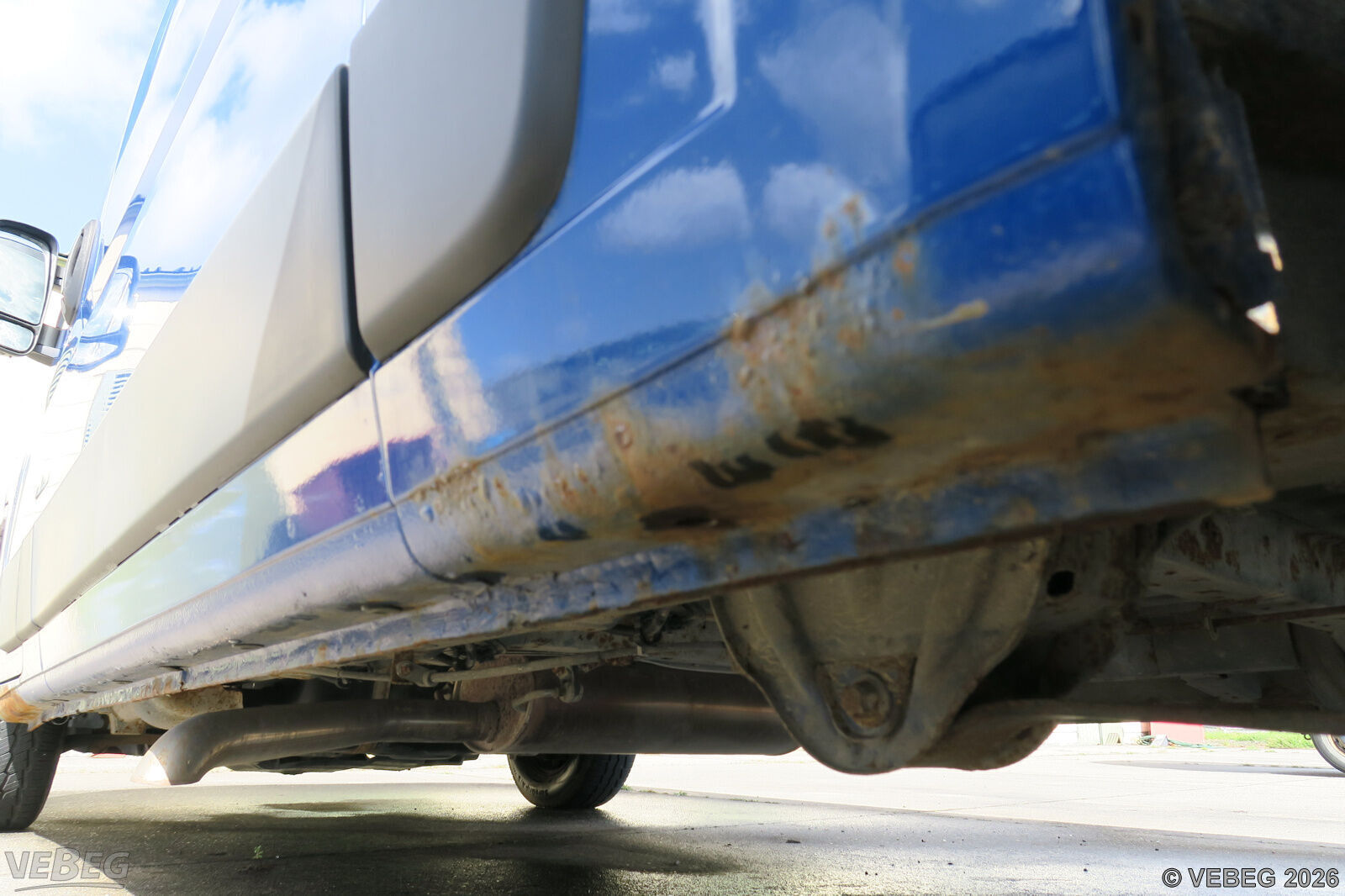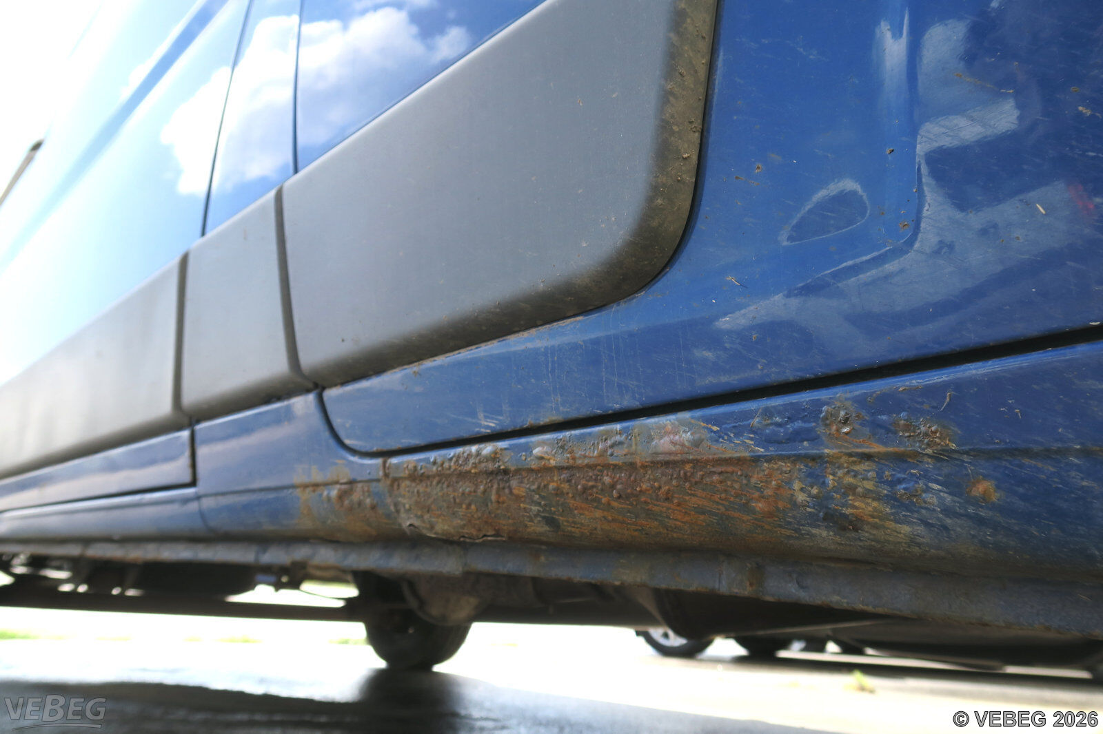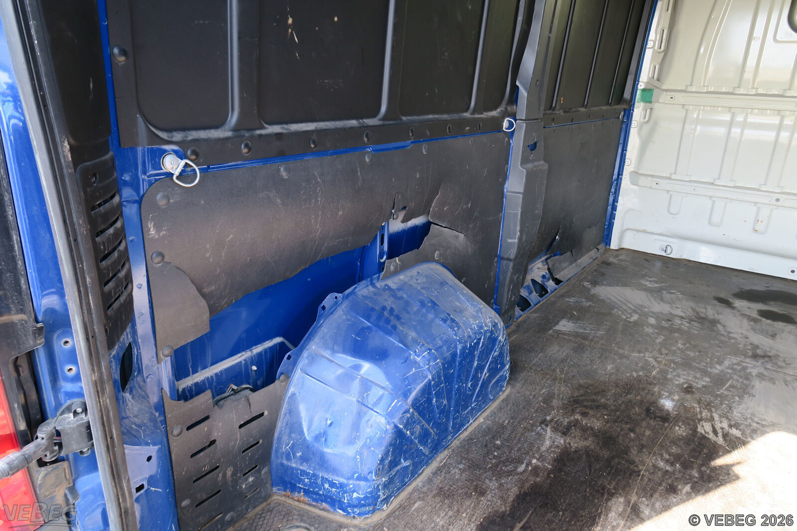 Getriebeschaden, Steinschläge im Frontbereich, Seitenwand rechts verbeult, Abdeckung hinten rechts fehlt, Laderaum stark verschlissen, Lackschäden, Dellen, Kratzer, Korrosionsschäden, alters- und nutzungsbedingter Verschleiß.