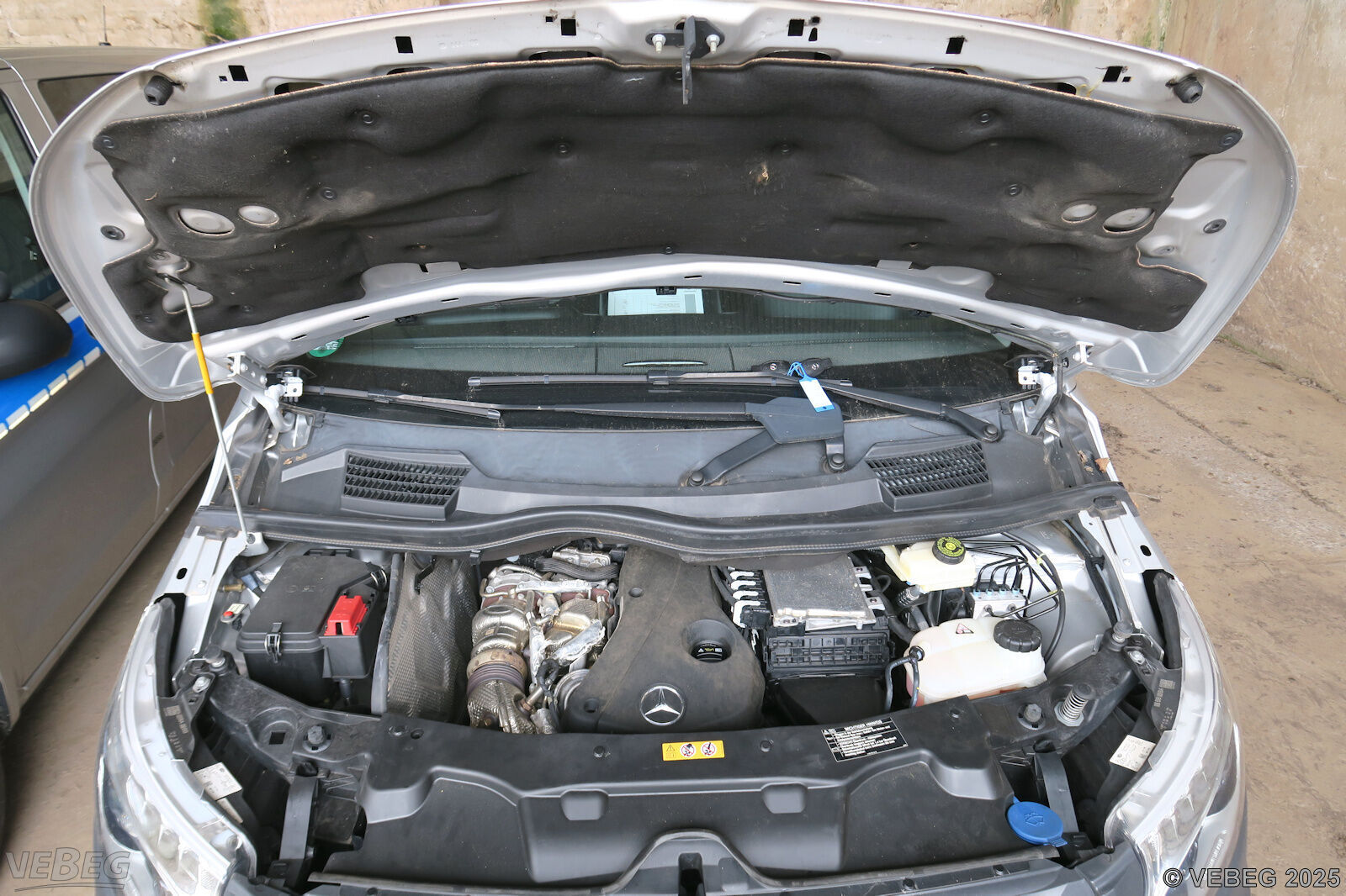 Motorraum Marderschaden, Ausbauspuren Funk-/Sondersignalanlage und technische Einsatzausstattung, Steinschläge im Frontbereich, Lackschäden durch Folienentfernung, Gebrauchsspuren, Standschäden,