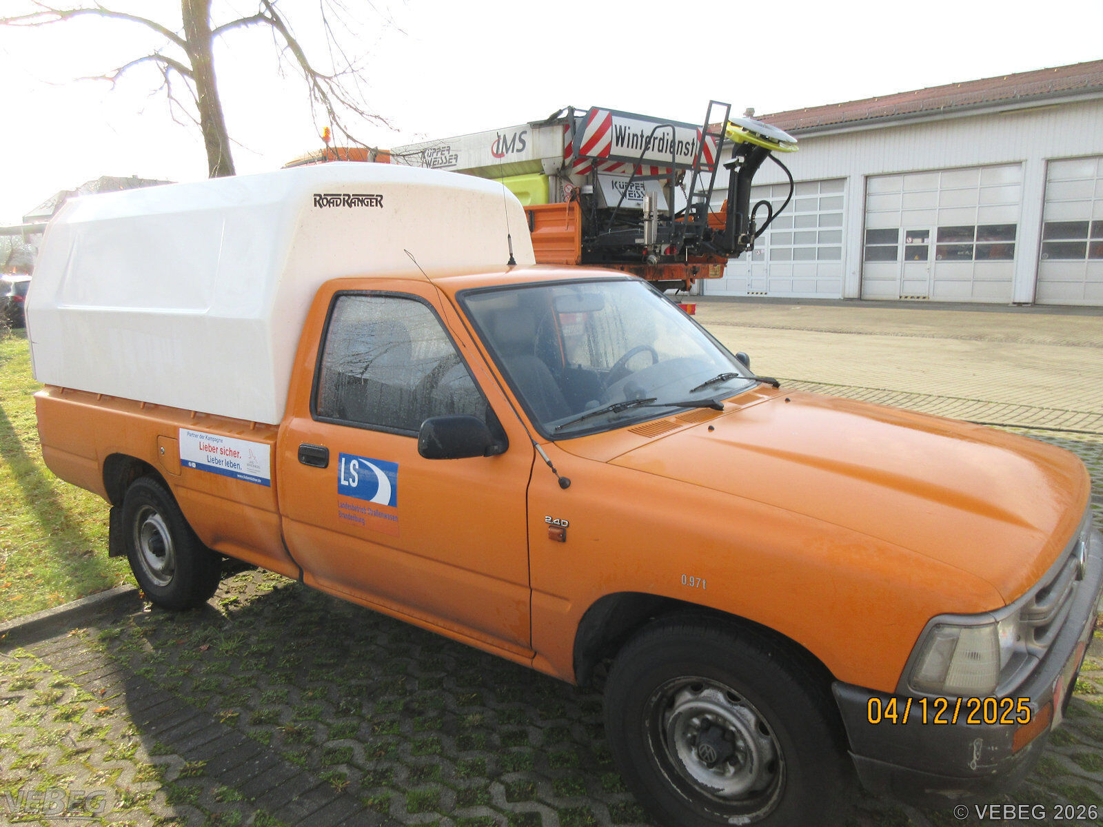BemerkungenTermine für Besichtigung oder Abholung sind mit der zuständigen Lagerortdienststelle verpflichtend vorab per Telefon /oder E-Mail zu vereinbaren.Die Rechnungsstellung erfolgt zuzüglich der gesetzlichen Umsatzsteuer. GebotsbasisStückBitte beachten Sie auch die Hinweise und Bedingungen im Vorspann zu dieser Ausschreibung: Die von der VEBEG angebotenen Fahrzeuge stammen aus Aussonderungen ihrer Auftraggeber. Einzelheiten zum Zustand der jeweiligen Fahrzeuge entnehmen Sie bitte den Lostexten. Zusätzlich verweisen wir ausdrücklich auf Abschnitte B und G unserer Allgemeinen Geschäftsbedingungen (AGB). Fahrzeuge die nach Einschätzung der VEBEG der Ausfuhrgenehmigungspflicht unterliegen, sind mit Verweis auf die Punkte E3 und E4 unserer AGB entsprechend gekennzeichnet. Zum Gebotspreis kommt die gesetzliche Umsatzsteuer hinzu. Die Differenzbesteuerung gemäß § 25a UStG wird nur angewendet, wenn dies ausdrücklich in der jeweiligen Ausschreibung angegeben ist. | Lagerort / StandortStraßenmeisterei CottbusMerzdorfer Weg 3 Tel.: 03342 249-1790 Herr Tanhäuser Durchwahl: 1791 0173 6481491 LS-SM.Cottbus@LS.Brandenburg.de 03042 Cottbus | ||||||||||||||||