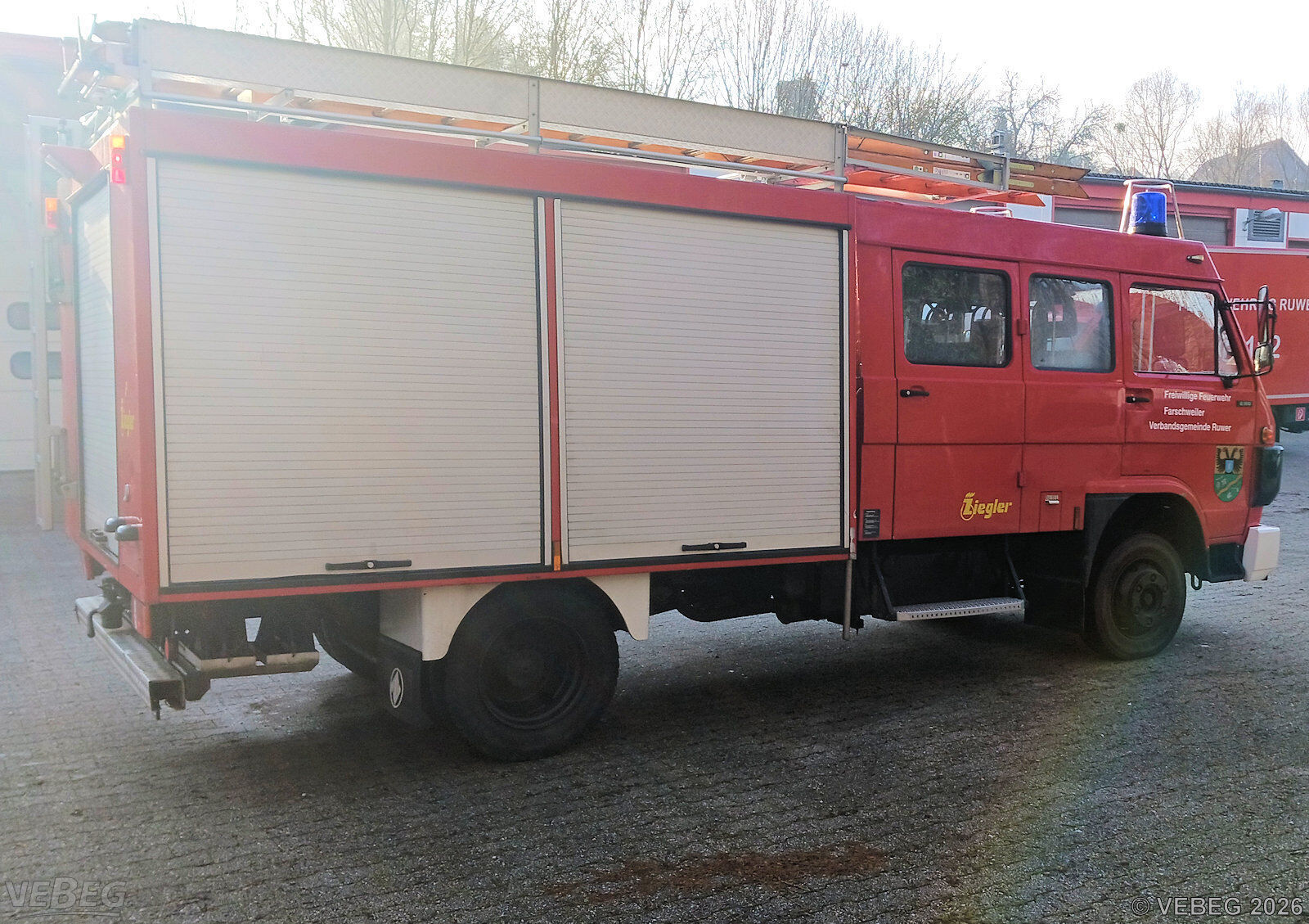 Motorleistung 107 kW; Doppelkabine, Aufbau Ziegler mit Rollläden, Löschwassertank 640 l, AHK; mit Teilbeladung der feuerwehrtechnischen Ausstattung;