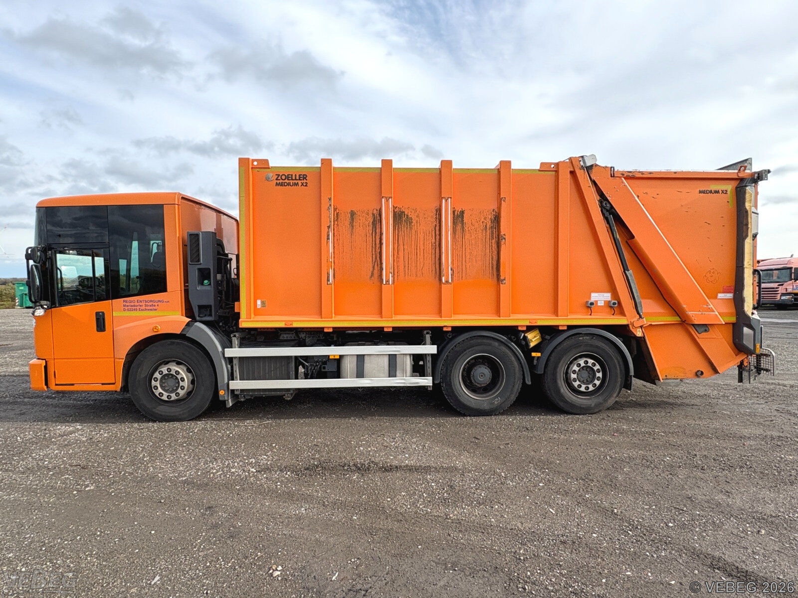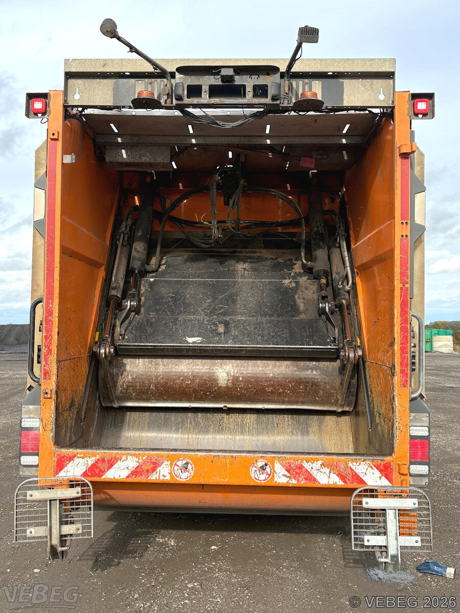 Motorleistung 260 kW, Euro 6, Automatikgetriebe; Aufbau Zöller Medium X2 Evo, Sperrmüll-Schüttung, lenkbare Nachlaufachse;