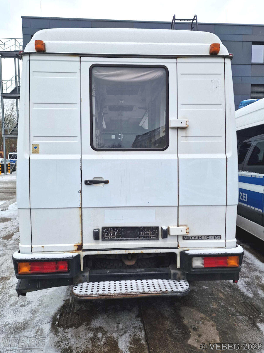 Motor undicht, Beleuchtungsanlage reparaturbedürftig, Anfahrschaden hinten links, Innenraum beschädigt, starke Korrosionsschäden mit teilweisen Durchrostungen (Heckblech, Türen, Bodengruppe, Seitenteile, Radhäuser u. a.), Lackschäden und Klebereste durch Folienentfernung, Ausbauspuren Funk- und Sondertechnik, Dellen und Kratzer, Lack- und Standschäden, alters- und nutzungsbedingter Verschleiß; HU abgelaufen.