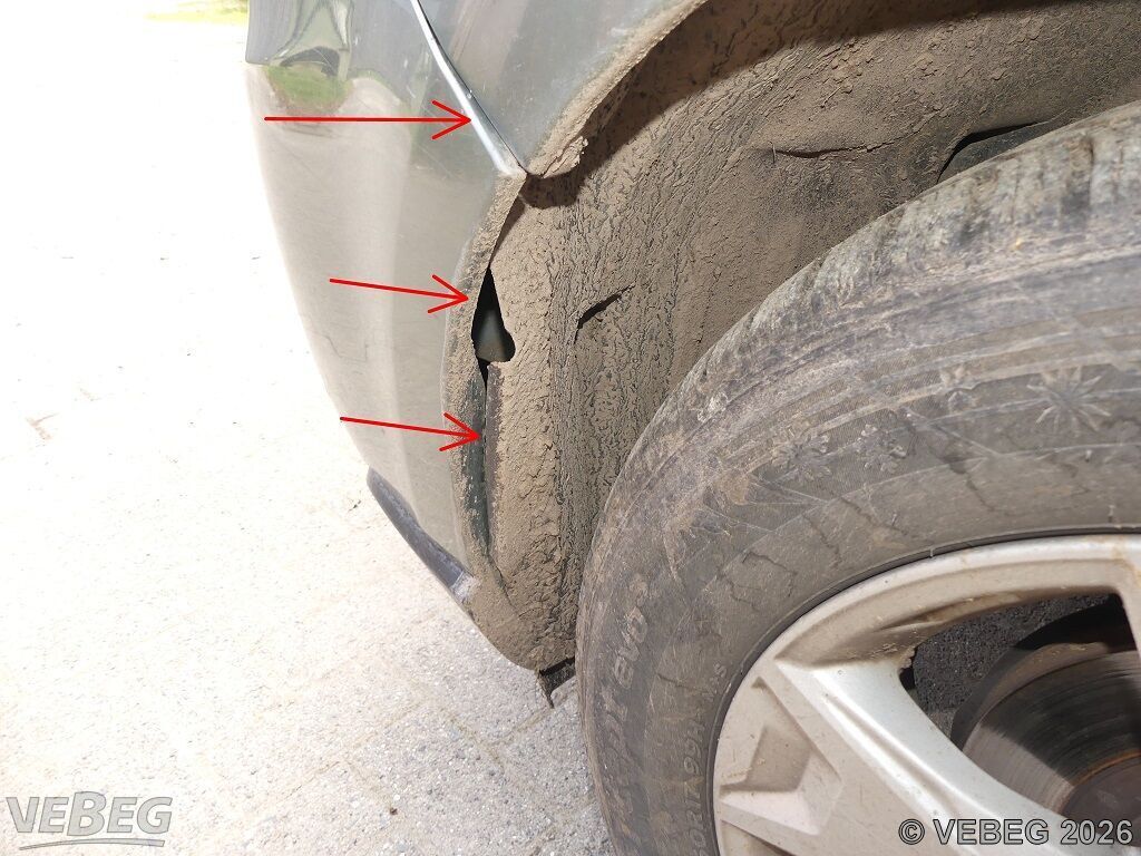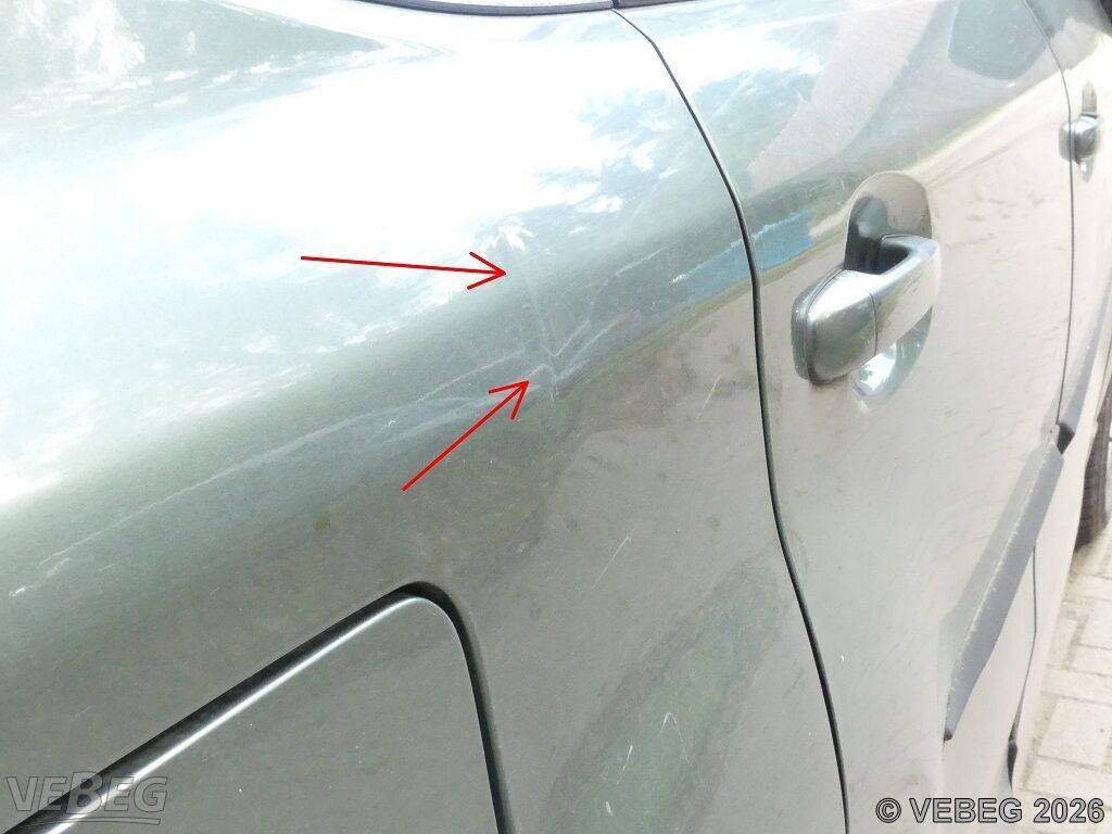 Motor springt nicht an, Stoßfänger vorn und hinten verformt, Schlussleuchte links beschädigt, Radhausschale vorn links und Türleiste rechts gebrochen, rundum Kratzer und Dellen, Innenraum verschmutzt und versport, Batterie tiefentladen, Gebrauchsspuren, Korrosion, alters- und nutzungsbedingter Verschleiß, HU abgelaufen.