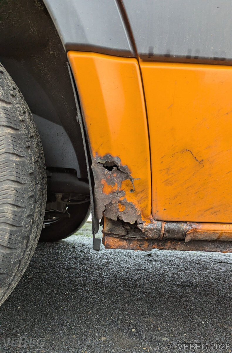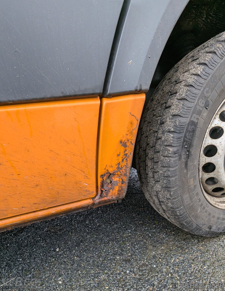 Batterie, Lenk- und Abgasanlage defekt, Bereifung verschlissen, Riementrieb atypische Geräusche, Dellen und Kratzer, Ausbauspuren Funk- und Sondertechnik, starke Stand- und Korrosionsschäden mit teilweisen Durchrostungen (Schweller, Kotflügel u. a.), alters- und nutzungsbedingter Verschleiß; HU abgelaufen.