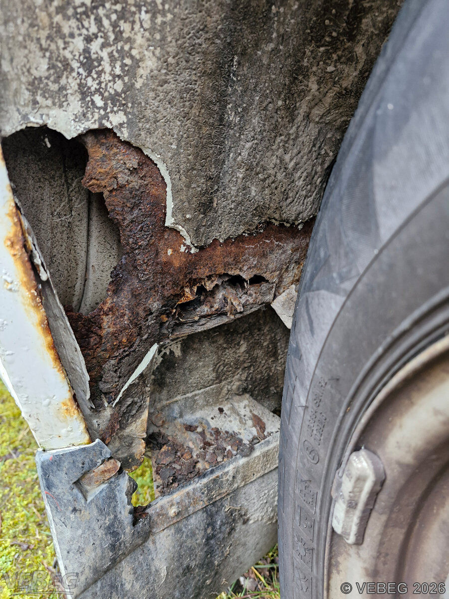 Getriebeschaden, Kupplung verschlissen, Bremse defekt, Ausbauspuren Funkanlage und Sondereinbauten, Lackschäden, Kratzer, Dellen, Gebrauchsspuren, Stand- und starke Korrosion mit teilweisen Durchrostungen, alters- und nutzungsbedingter Verschleiß, HU abgelaufen.