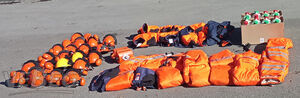 22 Helme; 16 Hosen; 8 Jacken; 9 Kanister;