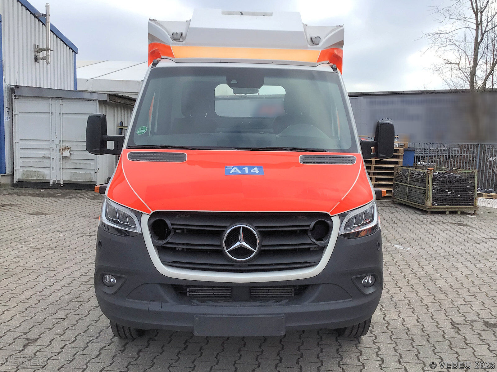 Hinweise: Verladung erforderlich. Vor Wiederzulassung zum öffentlichen Straßenverkehr müssen die umlaufenden roten Streifen (Tagesleuchtfarbe) entfernt werden.