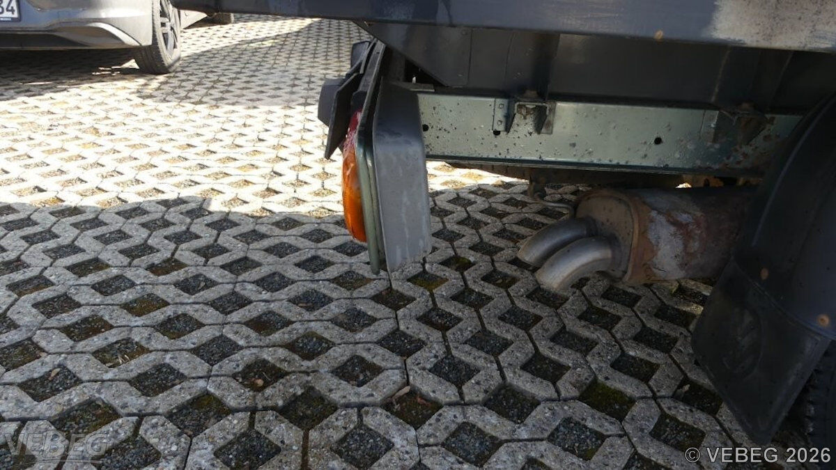 Abgasanlage reparaturbedürftig, Einsatz überwiegend auf Waldwegen, rundum Anfahrschäden, Kratzer und Dellen, Schweller eingedrückt, Aufsetzschäden, Plane gerissen, Spiegel rechts gebrochen, Batterie entladen, starke Gebrauchsspuren, Verschmutzungen, Korrosionsschäden mit Durchrostungen, alters- und nutzungsbedingter Verschleiß, HU abgelaufen.