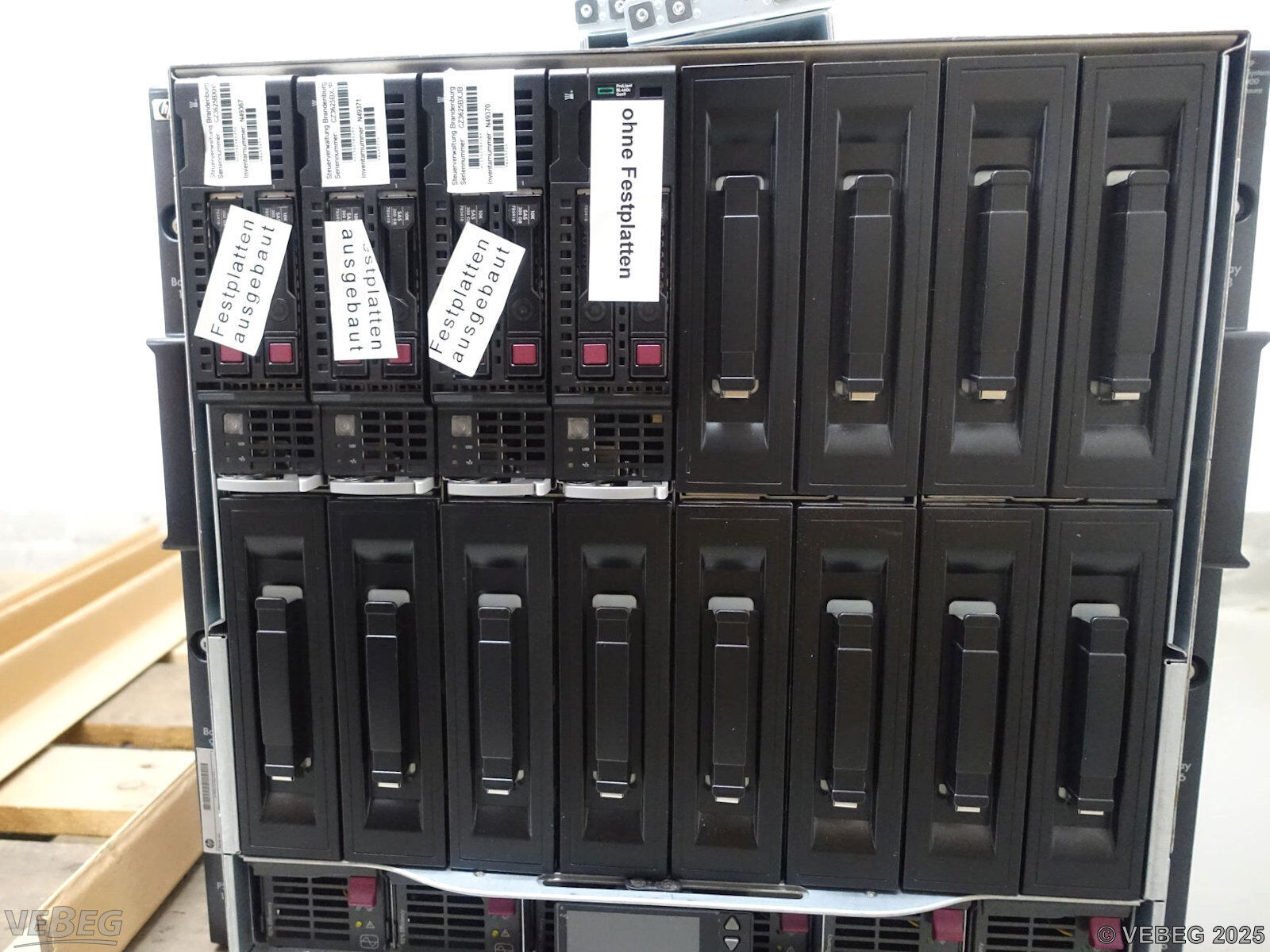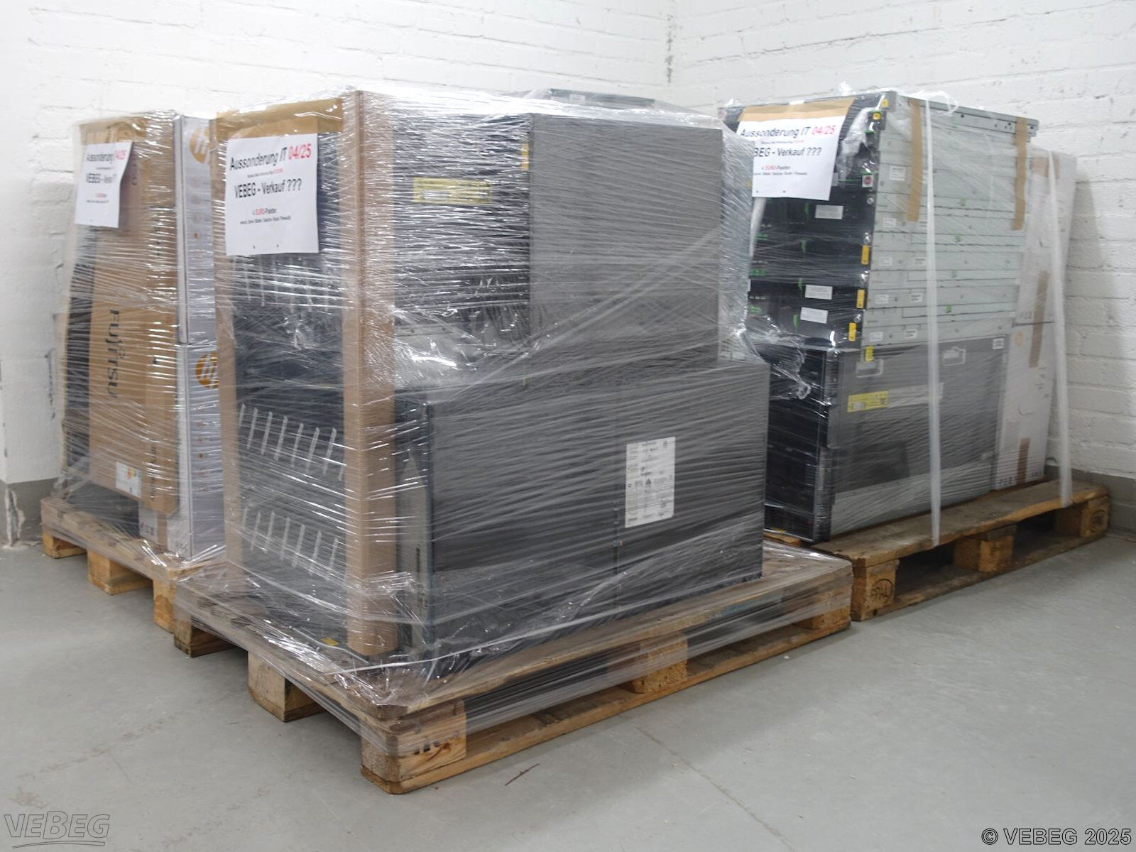 - Die Geräte stehen lose (unzureichend gesichert) auf 4 Paletten zur Abholung bereit.
