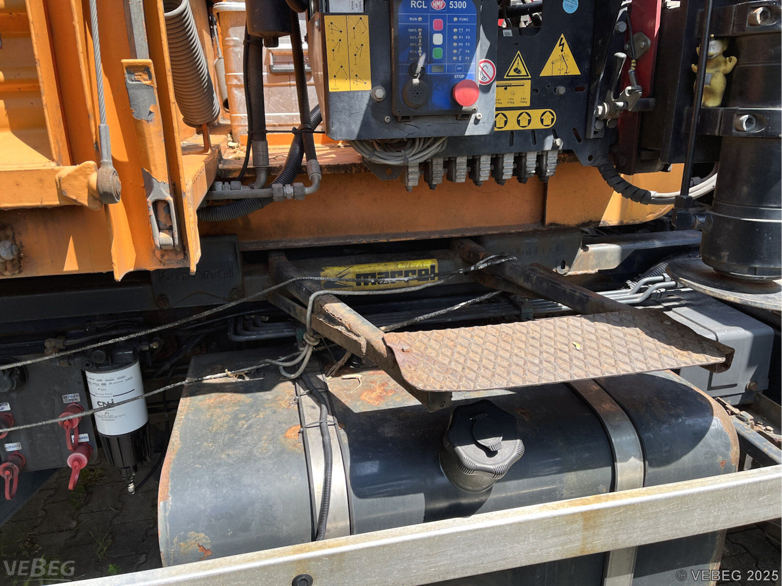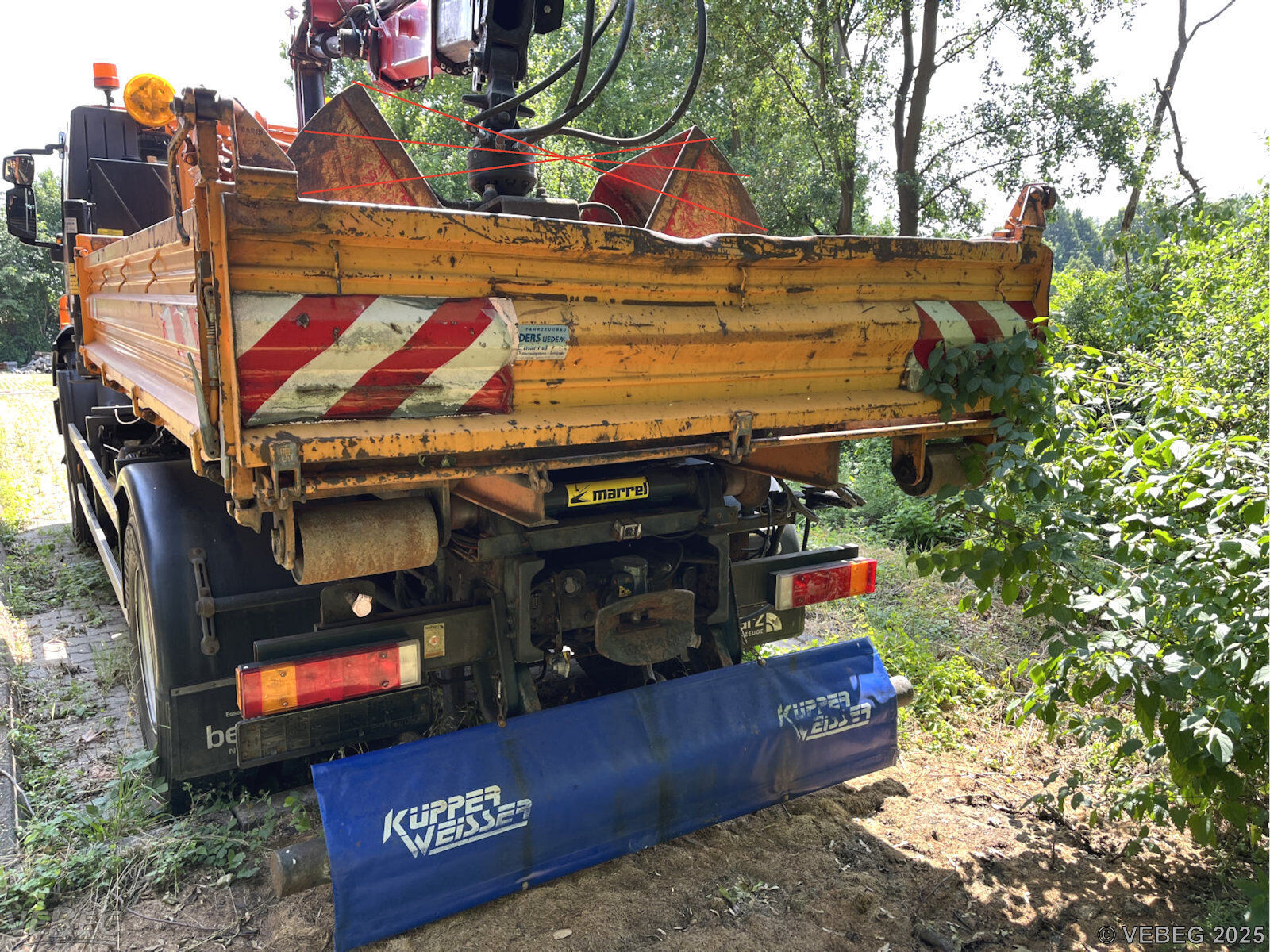 Halterung der Trittstufe gerissen, Kunststoffabdeckung Kotflügel rechts fehlt, Hydraulikschläuche porös, Ladekran ausgeschlagen, Gebrauchsspuren, Stand- und Korrosionsschäden, alters- und nutzungsbedingter Verschleiß, HU abgelaufen, UVV Ladekran abgelaufen.