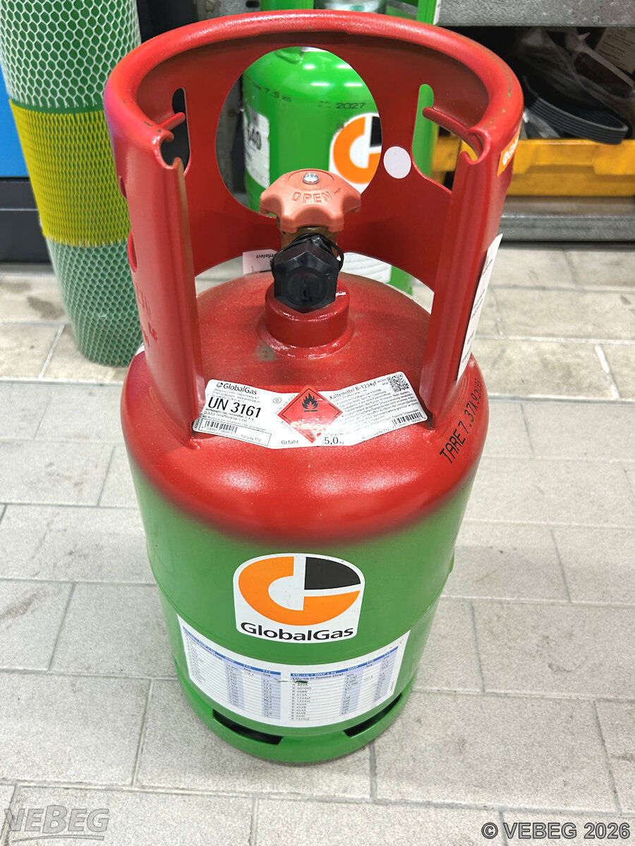 mit 2 Kältemittelflaschen, davon 1 Stück R-134a, 1 Stück R-1234yf