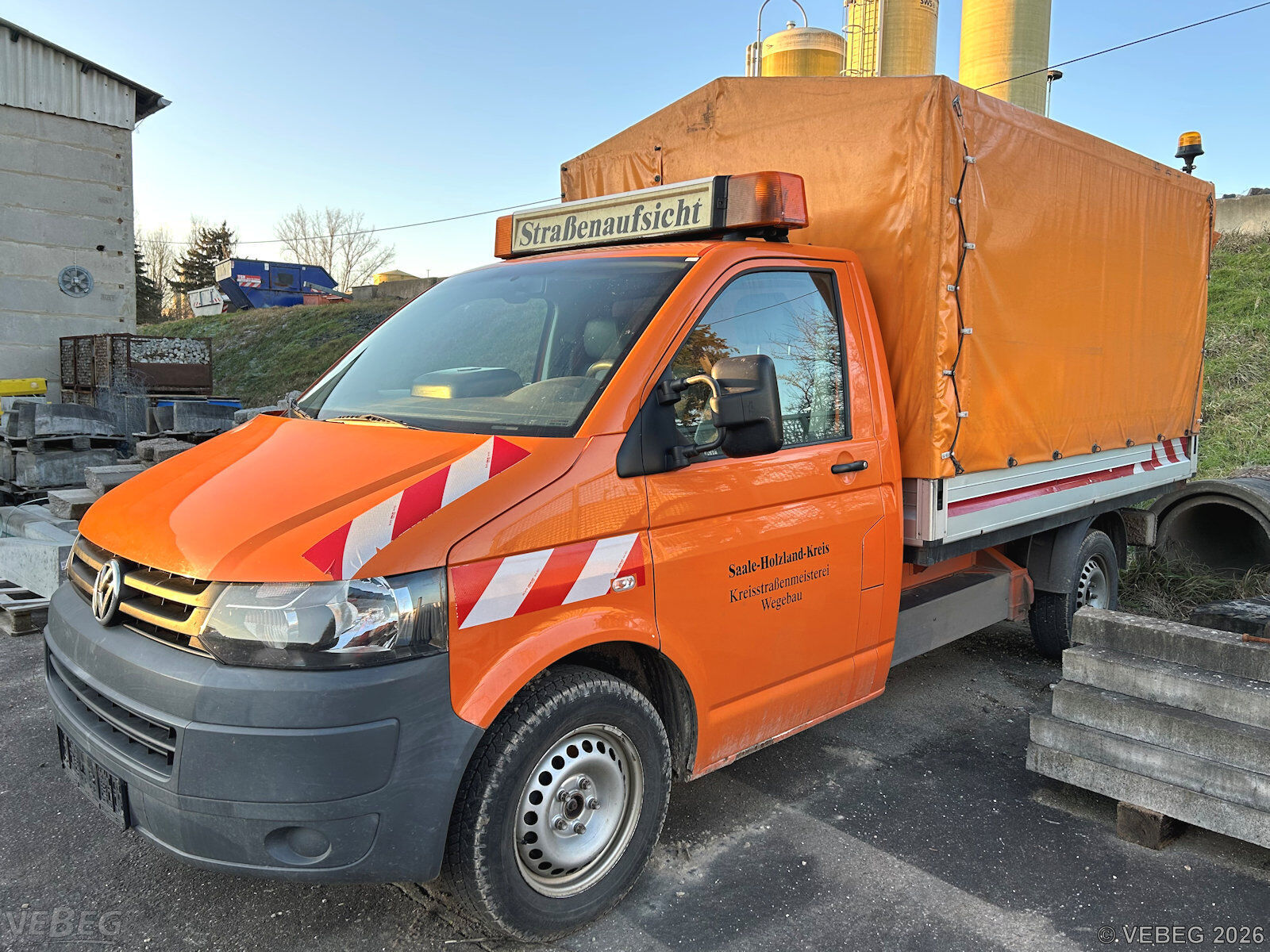 BemerkungenTermine für Besichtigung oder Abholung sind mit der zuständigen Lagerortdienststelle verpflichtend vorab per Telefon /oder E-Mail zu vereinbaren.Die Rechnungsstellung erfolgt zuzüglich der gesetzlichen Umsatzsteuer. GebotsbasisStückBitte beachten Sie auch die Hinweise und Bedingungen im Vorspann zu dieser Ausschreibung: Die von der VEBEG angebotenen Fahrzeuge stammen aus Aussonderungen ihrer Auftraggeber. Einzelheiten zum Zustand der jeweiligen Fahrzeuge entnehmen Sie bitte den Lostexten. Zusätzlich verweisen wir ausdrücklich auf Abschnitte B und G unserer Allgemeinen Geschäftsbedingungen (AGB). Fahrzeuge die nach Einschätzung der VEBEG der Ausfuhrgenehmigungspflicht unterliegen, sind mit Verweis auf die Punkte E3 und E4 unserer AGB entsprechend gekennzeichnet. Zum Gebotspreis kommt die gesetzliche Umsatzsteuer hinzu. Die Differenzbesteuerung gemäß § 25a UStG wird nur angewendet, wenn dies ausdrücklich in der jeweiligen Ausschreibung angegeben ist. | Lagerort / StandortDienstleistungsbetriebSaale-Holzland-Kreis Kreisstraßenmeisterei August-Bebel-Straße 9 Tel.: 036428 134297 Frau Gundermann 07607 Eisenberg |
