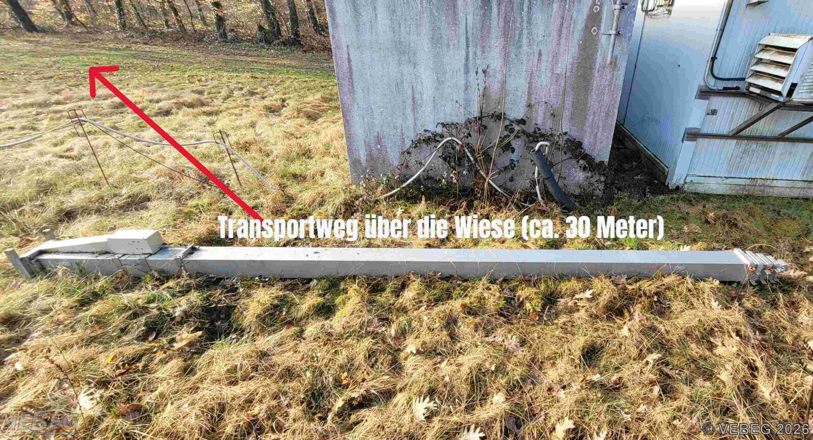 Der Abtransport (ca. 30 m) erfolgt über eine nicht befahrbare Wiese.