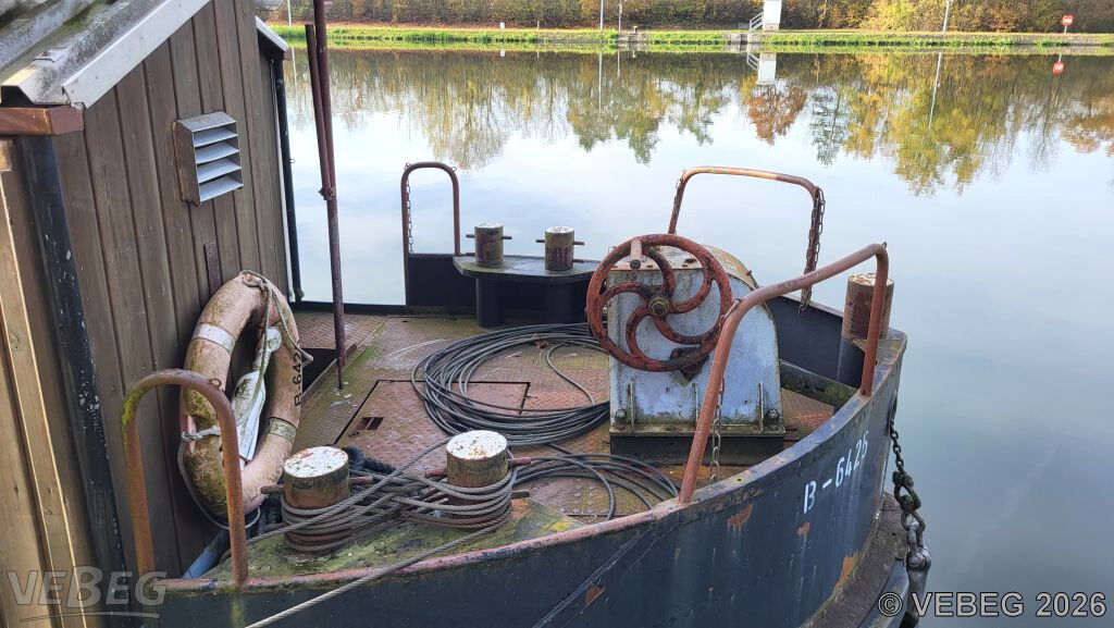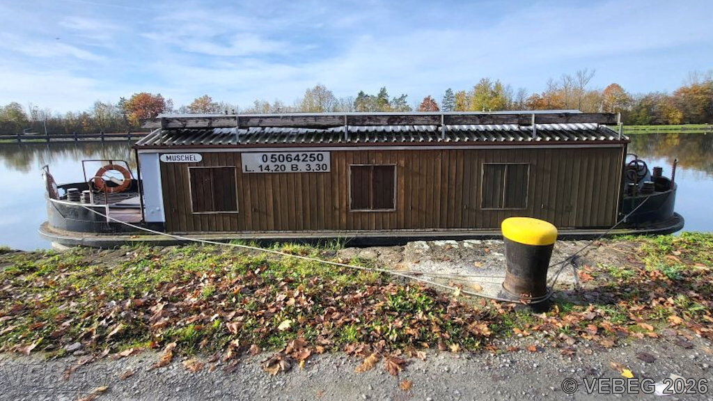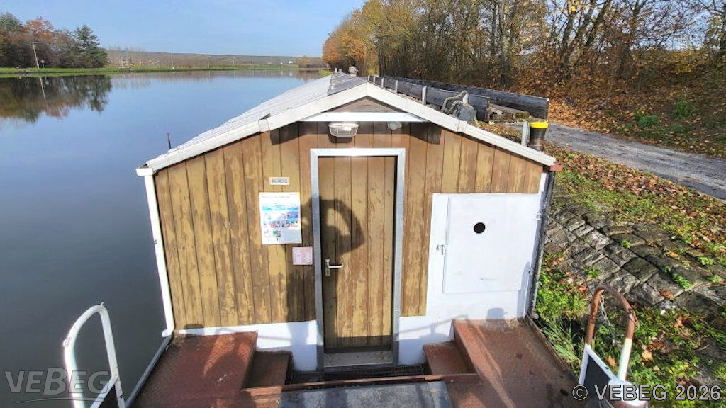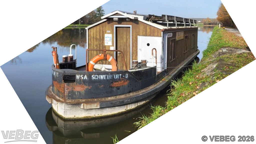 Das Bauhüttenschiff B6425 wurde im Bereich des WSA Main als Unterkunft und Werkstatt genutzt, es wird verkauft, wie es am Standort schwimmt: