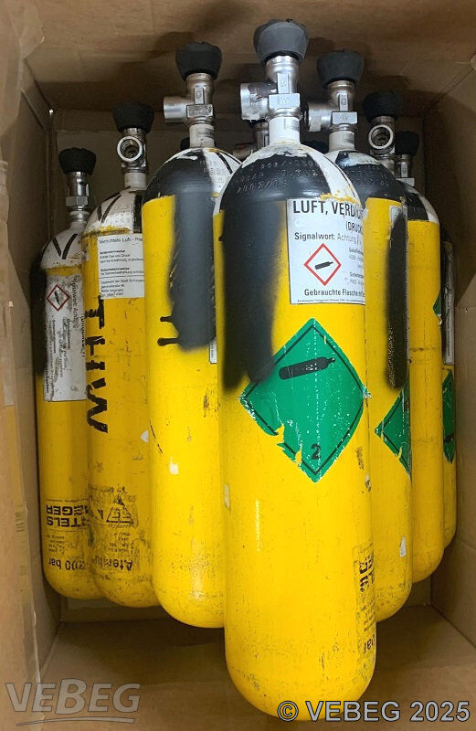| BemerkungenTermine für Besichtigung oder Abholung sind mit der zuständigen Lagerortdienststelle verpflichtend vorab per Telefon /oder E-Mail zu vereinbaren.Druckgasflaschen sind ein Gefahrgut i.S.der GGVSE/ADR UN 1002 Luft verdichtet (Druckluft), 2.2. Hinweis: Prüfdatum abgelaufen. Druckgasflaschen dürfen auch nach Ablauf der für die wiederkehrende Prüfung festgelegten Frist befördert werden, um sie der Prüfung zuzuführen (4.1.6.10). Druckgasflaschen müssen entsprechend gekennzeichnet und bezettelt werden (5.2). Die Rechnungsstellung erfolgt zuzüglich der gesetzlichen Umsatzsteuer. GebotsbasisPostenBitte beachten Sie auch die Hinweise und Bedingungen im Vorspann zu dieser Ausschreibung: Die von der VEBEG angebotenen Waren stammen aus Aussonderungen ihrer Auftraggeber. Einzelheiten zum Zustand der jeweiligen Waren entnehmen Sie bitte den Lostexten. Insbesondere müssen technische Arbeitsmittel und Verbraucherprodukte i.S. des Geräte- und Produktsicherheitsgesetzes vor ihrer Verwendung instandgesetzt oder wiederaufgearbeitet werden. Zusätzlich verweisen wir ausdrücklich auf Abschnitte B und G unserer Allgemeinen Geschäftsbedingungen (AGB). Waren die nach Einschätzung der VEBEG der Ausfuhrgenehmigungspflicht unterliegen, sind mit Verweis auf die Punkte E3 und E4 unserer AGB entsprechend gekennzeichnet. Zusätzlich zum Kaufpreis wird die gesetzliche Umsatzsteuer berechnet, soweit nicht von der Regelung des § 25a Umsatzsteuergesetz Gebrauch gemacht wird. | Lagerort / StandortTechnisches HilfswerkRegionalstelle Bad Tölz Förchenholzstraße 10 Tel.: 08041 79246-0 Herr Bergkofer 83646 Bad Tölz |