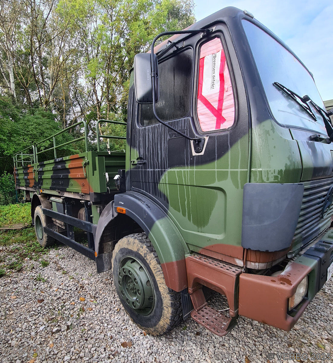BemerkungenTermine für Besichtigung oder Abholung sind mit der zuständigen Lagerortdienststelle verpflichtend vorab per Telefon /oder E-Mail zu vereinbaren.Telefonische Voranmeldung ist unbedingt erforderlich. Das Fahrzeug steht in 85053 Ingolstadt, Mailinger Spitz. Ausfuhrgenehmigungspflichtig [Info] . Die Rechnungsstellung erfolgt zuzüglich der gesetzlichen Umsatzsteuer. GebotsbasisStückBitte beachten Sie auch die Hinweise und Bedingungen im Vorspann zu dieser Ausschreibung: Die von der VEBEG angebotenen Fahrzeuge stammen aus Aussonderungen ihrer Auftraggeber. Einzelheiten zum Zustand der jeweiligen Fahrzeuge entnehmen Sie bitte den Lostexten. Zusätzlich verweisen wir ausdrücklich auf Abschnitte B und G unserer Allgemeinen Geschäftsbedingungen (AGB). Fahrzeuge die nach Einschätzung der VEBEG der Ausfuhrgenehmigungspflicht unterliegen, sind mit Verweis auf die Punkte E3 und E4 unserer AGB entsprechend gekennzeichnet. Zum Kaufpreis wird die gesetzliche Umsatzsteuer berechnet, soweit nicht von der Regelung des § 25a Umsatzsteuergesetz Gebrauch gemacht wird. | Lagerort / StandortBundeswehrPzPiBtl 8 - S4 Pionierkaserne auf der Schanz Manchinger Straße 1 Tel.: 0841 88660-0 Durchwahl: 8044 85053 Ingolstadt |