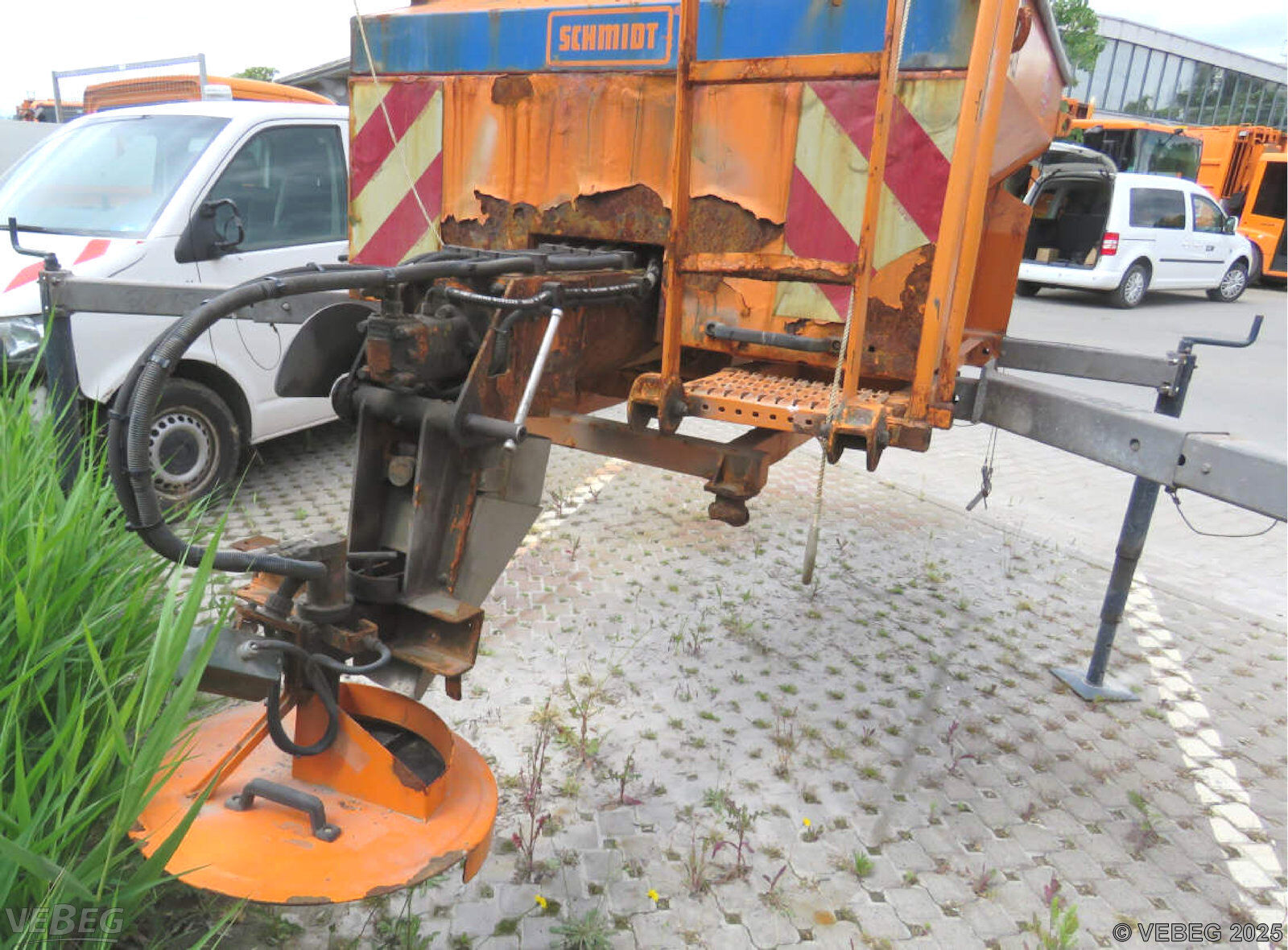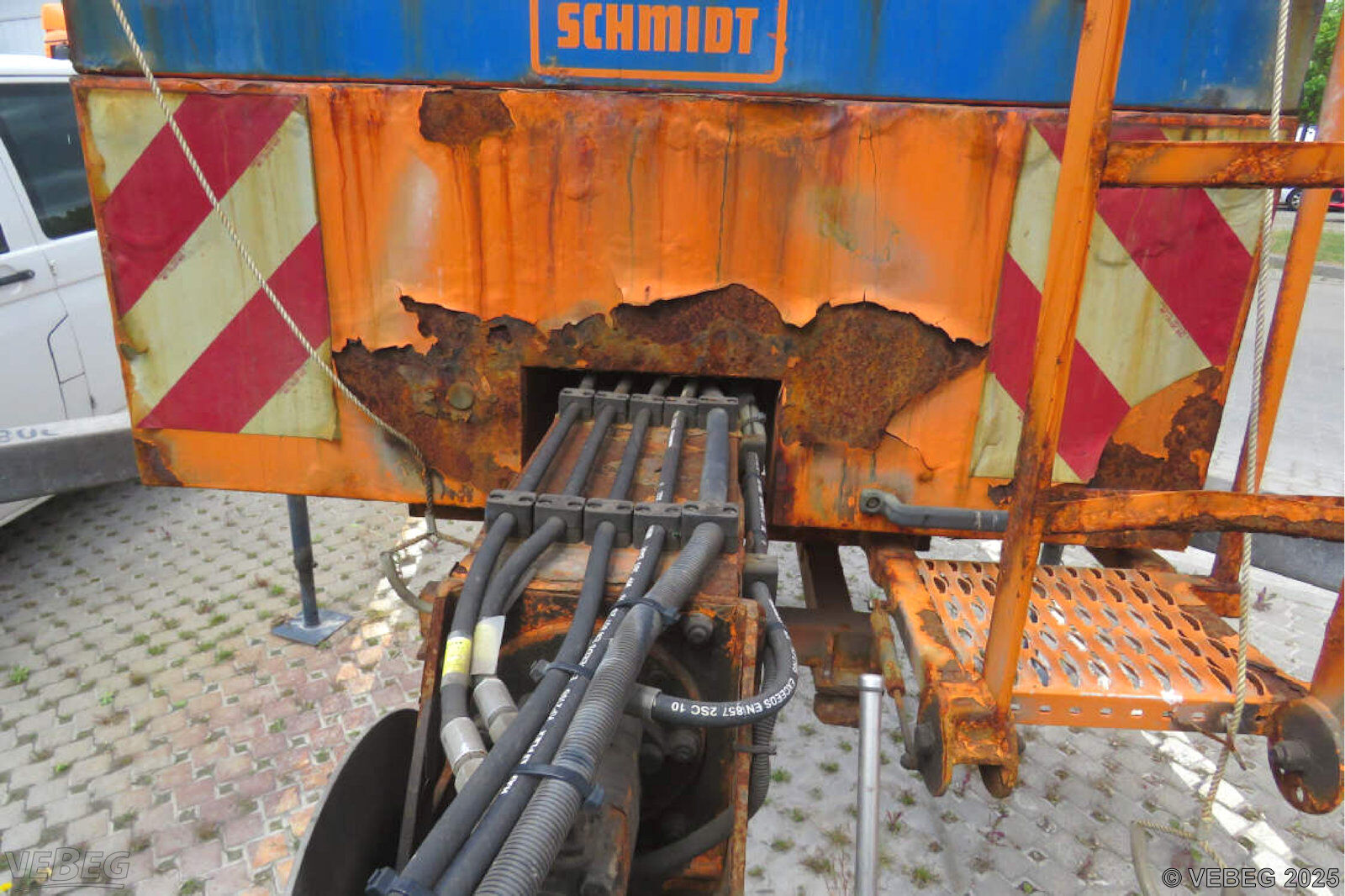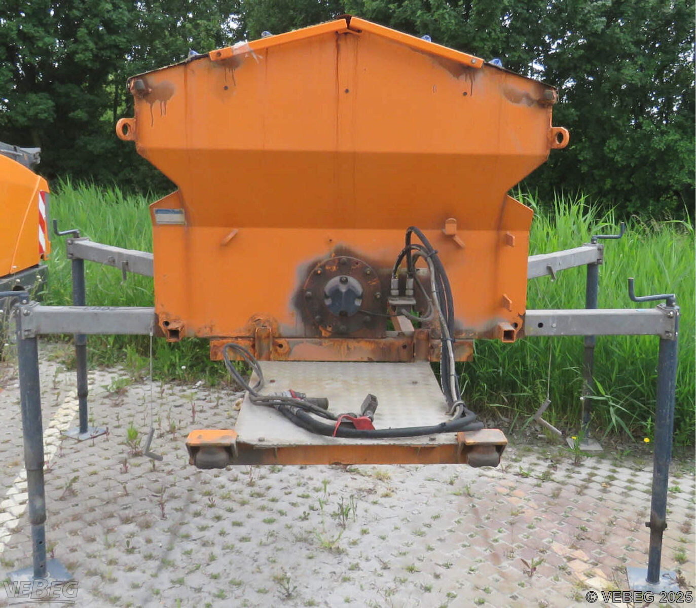 mit Abstellstützen; ohne Bedienpult, Aufbau stark korrodiert.