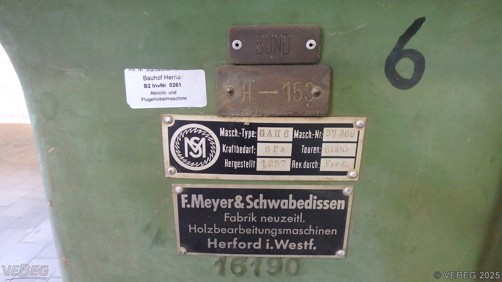 | BemerkungenTermine für Besichtigung oder Abholung sind mit der zuständigen Lagerortdienststelle verpflichtend vorab per Telefon /oder E-Mail zu vereinbaren.Abbau, Abtransport und Säuberung des Standplatzes sind vom Käufer in Abstimmung mit der Abgabe-Dienststelle vorzunehmen. Keine Verladehilfe möglich. Die Rechnungsstellung erfolgt zuzüglich der gesetzlichen Umsatzsteuer. GebotsbasisStückBitte beachten Sie auch die Hinweise und Bedingungen im Vorspann zu dieser Ausschreibung: Die von der VEBEG angebotenen Waren stammen aus Aussonderungen ihrer Auftraggeber. Einzelheiten zum Zustand der jeweiligen Waren entnehmen Sie bitte den Lostexten. Insbesondere müssen technische Arbeitsmittel und Verbraucherprodukte i.S. des Geräte- und Produktsicherheitsgesetzes vor ihrer Verwendung instandgesetzt oder wiederaufgearbeitet werden. Zusätzlich verweisen wir ausdrücklich auf Abschnitte B und G unserer Allgemeinen Geschäftsbedingungen (AGB). Waren die nach Einschätzung der VEBEG der Ausfuhrgenehmigungspflicht unterliegen, sind mit Verweis auf die Punkte E3 und E4 unserer AGB entsprechend gekennzeichnet. Zusätzlich zum Kaufpreis wird die gesetzliche Umsatzsteuer berechnet, soweit nicht von der Regelung des § 25a Umsatzsteuergesetz Gebrauch gemacht wird. | Lagerort / StandortWasserstraßen- und SchifffahrtsamtWestdeutsche Kanäle Bauhof Herne Pöppinghauser Straße 12 Tel.: 02323 9850-0 Herr Reitmeyer Durchwahl: 460 Heiko.Reitmeyer@wsv.bund.de 44628 Herne |