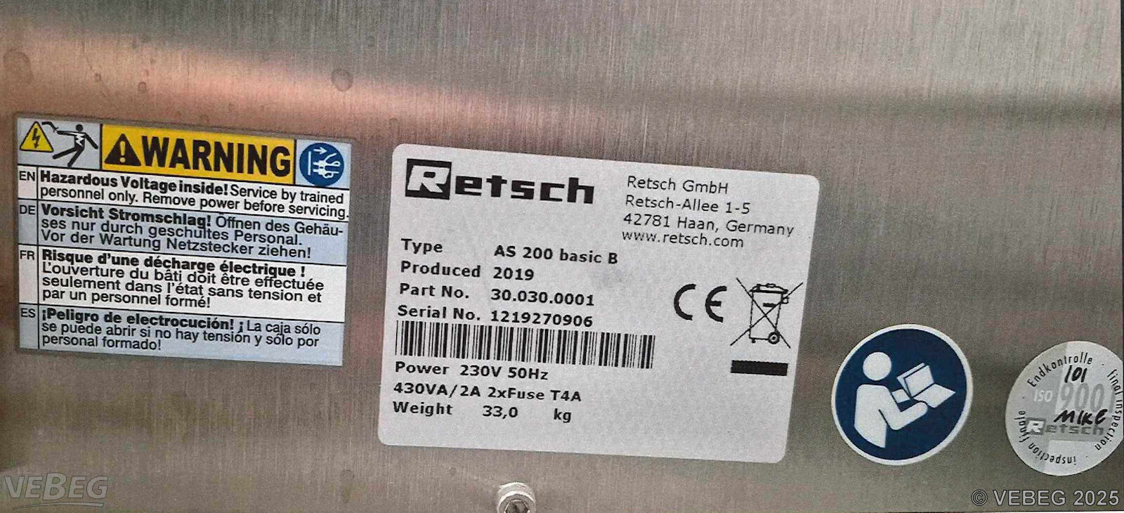 Baujahr 2019, S/N 1219270906; 230 V, 50 Hz,