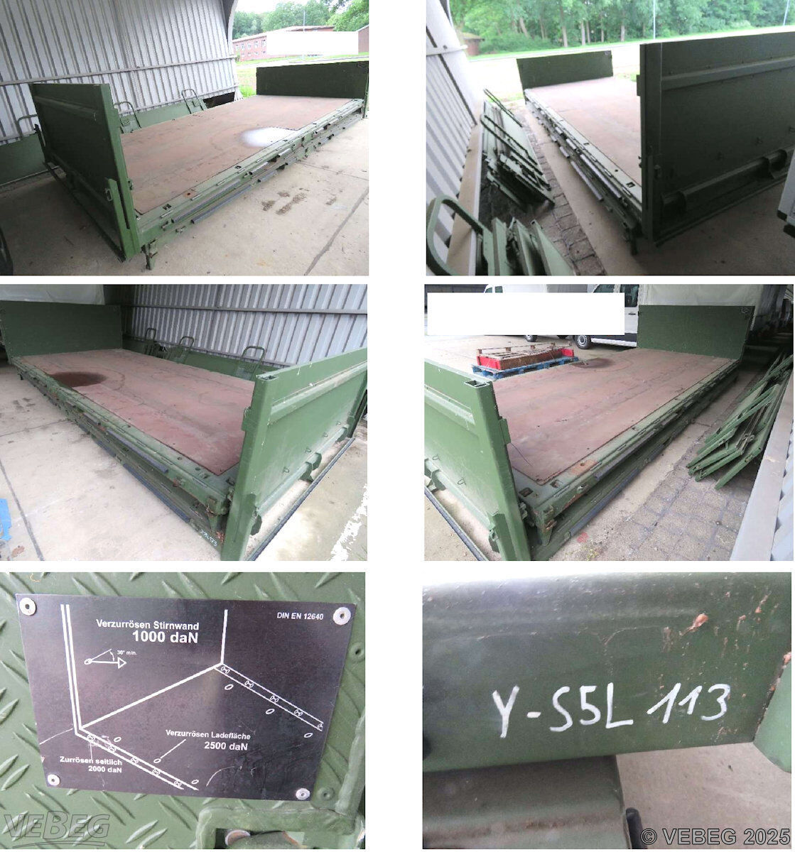 BemerkungenTermine für Besichtigung oder Abholung sind mit der zuständigen Lagerortdienststelle verpflichtend vorab per Telefon /oder E-Mail zu vereinbaren.Die Rechnungsstellung erfolgt zuzüglich der gesetzlichen Umsatzsteuer. GebotsbasisStückBitte beachten Sie auch die Hinweise und Bedingungen im Vorspann zu dieser Ausschreibung: Die von der VEBEG angebotenen Waren stammen aus Aussonderungen ihrer Auftraggeber. Einzelheiten zum Zustand der jeweiligen Waren entnehmen Sie bitte den Lostexten. Insbesondere müssen technische Arbeitsmittel und Verbraucherprodukte i.S. des Geräte- und Produktsicherheitsgesetzes vor ihrer Verwendung instandgesetzt oder wiederaufgearbeitet werden. Zusätzlich verweisen wir ausdrücklich auf Abschnitte B und G unserer Allgemeinen Geschäftsbedingungen (AGB). Waren die nach Einschätzung der VEBEG der Ausfuhrgenehmigungspflicht unterliegen, sind mit Verweis auf die Punkte E3 und E4 unserer AGB entsprechend gekennzeichnet. Zusätzlich zum Kaufpreis wird die gesetzliche Umsatzsteuer berechnet, soweit nicht von der Regelung des § 25a Umsatzsteuergesetz Gebrauch gemacht wird. | Lagerort / StandortBwFuhrparkService GmbHFahrzeug- und Warenlager Rheine Schüttorfer Damm 1 48432 Rheine Tel.: 0171 2988672 Ansprechpartner: Herr Rudnick E-Mail: fwl@bwfps.de |