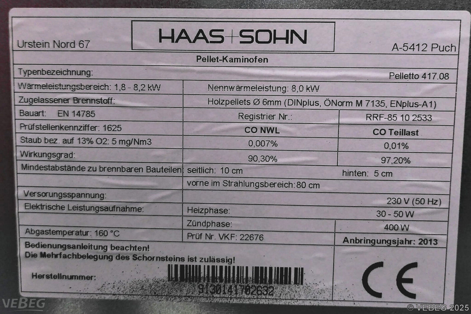 sowie 1 Pelletofen Pelletto 417.08, Anschaffung 2013,
