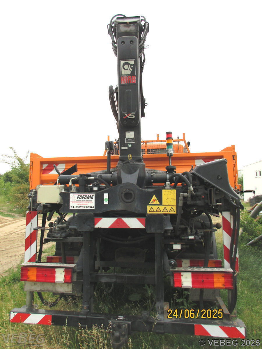 Motorleistung 210 kW; Ladekran Hiab 077HI DUO (defekt, Kransäule reparaturbedürftig, Hydraulikanschlüsse korrodiert, Gleitklötze verschlissen, Hydraulik undicht), Zweischalengreifer, Kommunalhydraulik, Zapfwellenantrieb vorn, AHK;