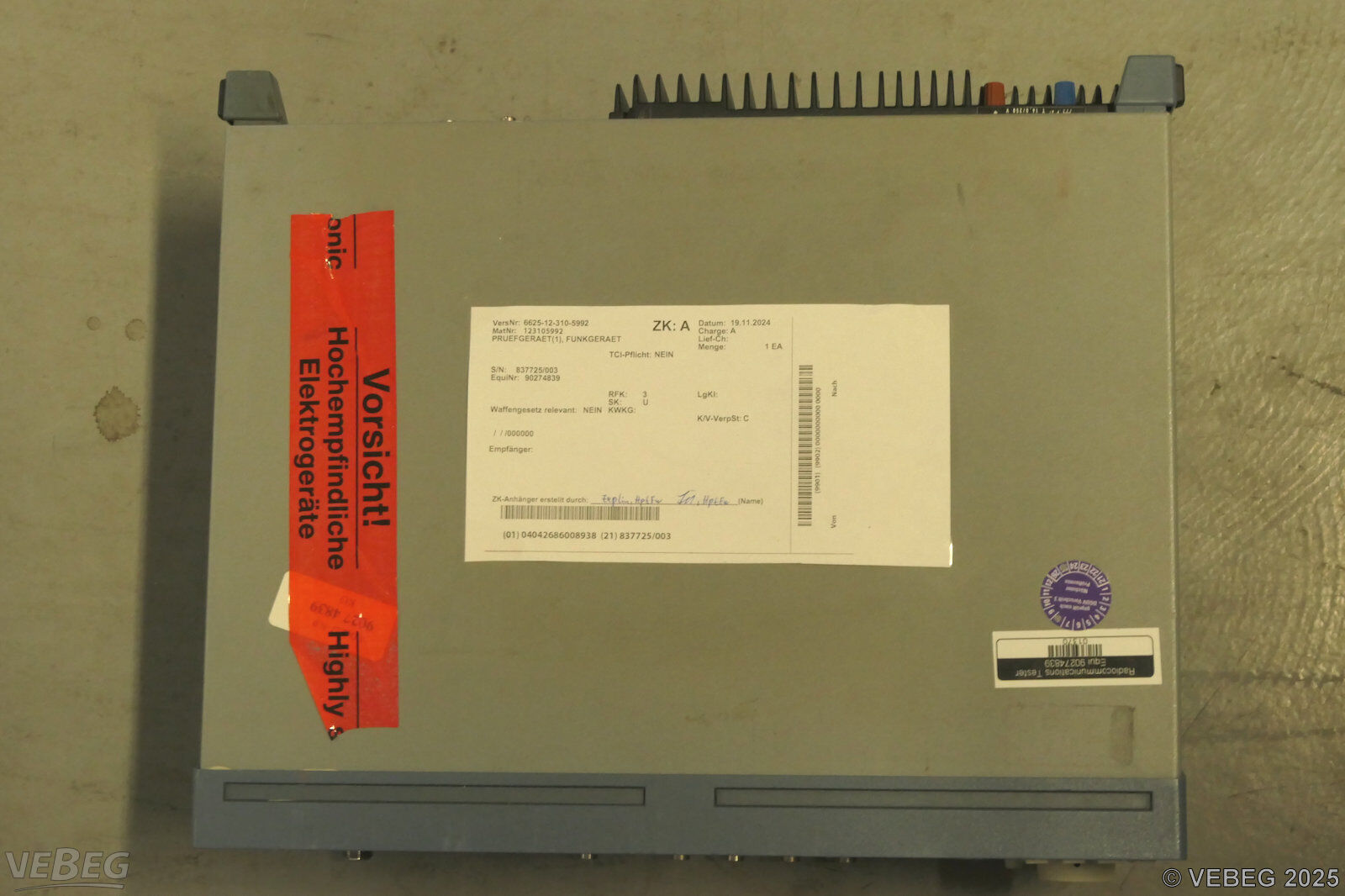 BemerkungenTermine für Besichtigung oder Abholung sind mit der zuständigen Lagerortdienststelle verpflichtend vorab per Telefon /oder E-Mail zu vereinbaren.Der Verkauf gebrauchter Elektro- und Elektronikgeräte im Sinne der Anlage 1 zu § 2 Abs. 1 ElektroG erfolgt ausschließlich an inländische Abnehmer mit deutscher Rechnungsadresse. Die Rechnungsstellung erfolgt zuzüglich der gesetzlichen Umsatzsteuer. GebotsbasisStückBitte beachten Sie auch die Hinweise und Bedingungen im Vorspann zu dieser Ausschreibung: Die von der VEBEG angebotenen Waren stammen aus Aussonderungen ihrer Auftraggeber. Einzelheiten zum Zustand der jeweiligen Waren entnehmen Sie bitte den Lostexten. Insbesondere müssen technische Arbeitsmittel und Verbraucherprodukte i.S. des Geräte- und Produktsicherheitsgesetzes vor ihrer Verwendung instandgesetzt oder wiederaufgearbeitet werden. Zusätzlich verweisen wir ausdrücklich auf Abschnitte B und G unserer Allgemeinen Geschäftsbedingungen (AGB). Waren die nach Einschätzung der VEBEG der Ausfuhrgenehmigungspflicht unterliegen, sind mit Verweis auf die Punkte E3 und E4 unserer AGB entsprechend gekennzeichnet. Zusätzlich zum Kaufpreis wird die gesetzliche Umsatzsteuer berechnet, soweit nicht von der Regelung des § 25a Umsatzsteuergesetz Gebrauch gemacht wird. | Lagerort / StandortBundeswehrAbgInsthStff HSG 64 Diepholz Fliegerhorst Maschstraße 200 Tel.: 05441 590-0 Durchwahl: 2679 49356 Diepholz |