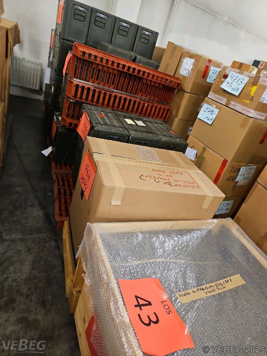 BemerkungenTermine für Besichtigung oder Abholung sind mit der zuständigen Lagerortdienststelle verpflichtend vorab per Telefon /oder E-Mail zu vereinbaren.Der Verkauf gebrauchter Elektro- und Elektronikgeräte im Sinne der Anlage 1 zu § 2 Abs. 1 ElektroG erfolgt ausschließlich an inländische Abnehmer mit deutscher Rechnungsadresse.Lagerhilfsmittel sind Eigentum der Dienststelle. Besichtigung nur montags bis donnerstags von 09.00 - 14.00 Uhr. Die Rechnungsstellung erfolgt zuzüglich der gesetzlichen Umsatzsteuer. GebotsbasisPostenBitte beachten Sie auch die Hinweise und Bedingungen im Vorspann zu dieser Ausschreibung: Die von der VEBEG angebotenen Waren stammen aus Aussonderungen ihrer Auftraggeber. Einzelheiten zum Zustand der jeweiligen Waren entnehmen Sie bitte den Lostexten. Insbesondere müssen technische Arbeitsmittel und Verbraucherprodukte i.S. des Geräte- und Produktsicherheitsgesetzes vor ihrer Verwendung instandgesetzt oder wiederaufgearbeitet werden. Zusätzlich verweisen wir ausdrücklich auf Abschnitte B und G unserer Allgemeinen Geschäftsbedingungen (AGB). Waren die nach Einschätzung der VEBEG der Ausfuhrgenehmigungspflicht unterliegen, sind mit Verweis auf die Punkte E3 und E4 unserer AGB entsprechend gekennzeichnet.Zum Gebotspreis kommt die gesetzliche Umsatzsteuer hinzu. Die Differenzbesteuerung gemäß § 25a UStG wird nur angewendet, wenn dies ausdrücklich in der jeweiligen Ausschreibung angegeben ist. | Lagerort / StandortBundeswehrDepot West MatLgr Mechernich TE Verwertung Bleiberg-Kaserne Bleibergstraße 1 Tel.: 02443 496-0 Durchwahl: 3530 oder 3531 53894 Mechernich |