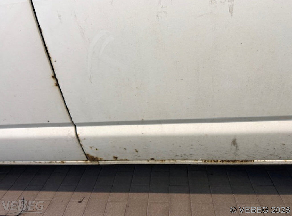 Dellen und Kratzer, Ausbauspuren Funk- und Sondertechnik, Lackschäden und Klebereste durch Folienentfernung, starke Stand- und Korrosionsschäden, alters- und nutzungsbedingter Verschleiß.