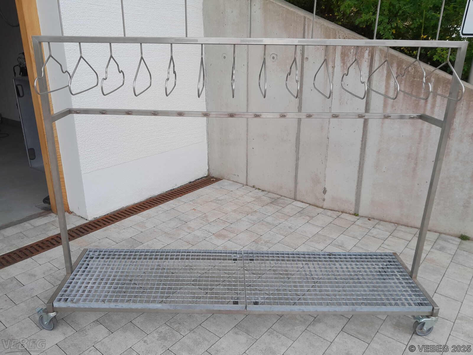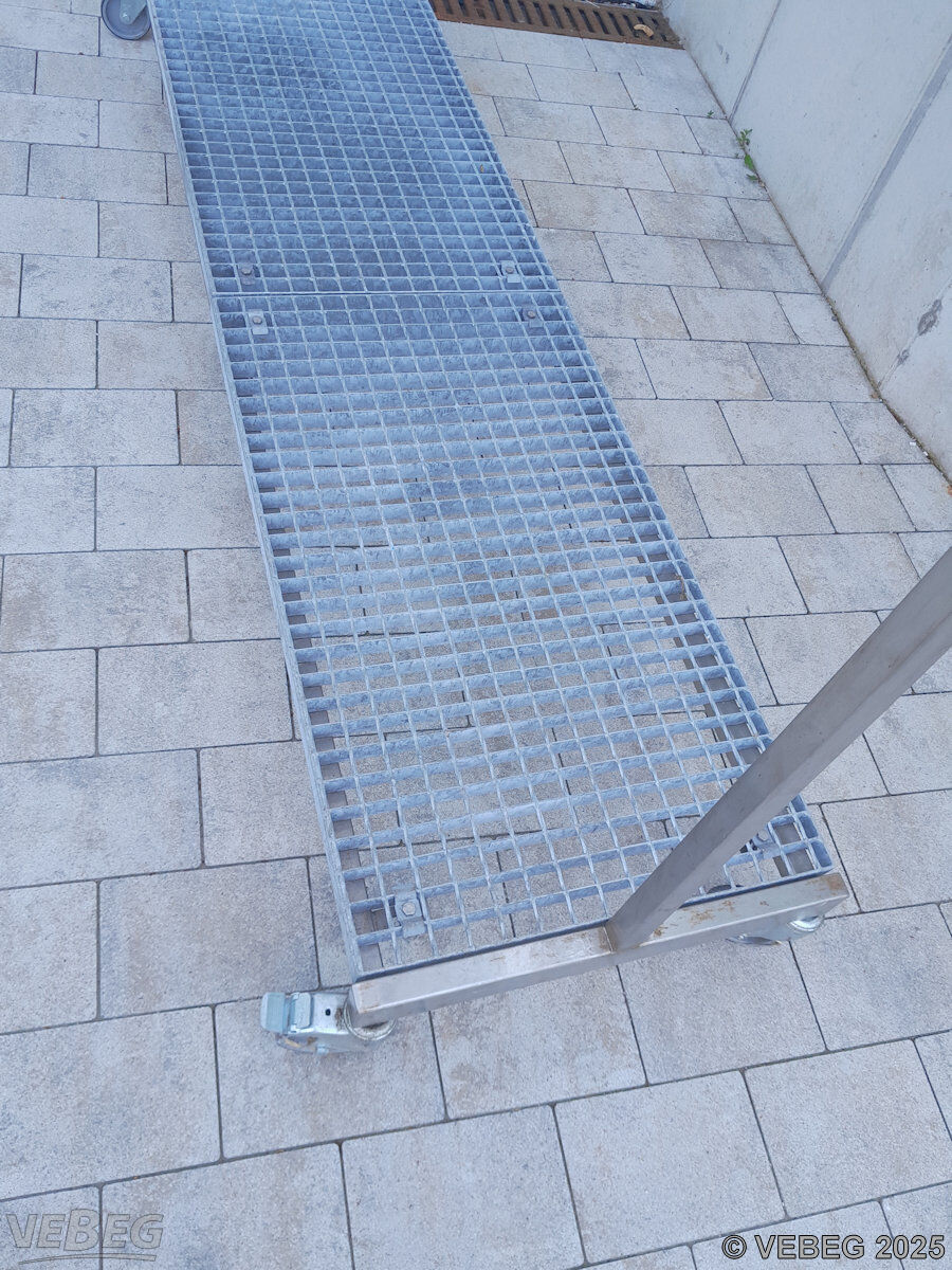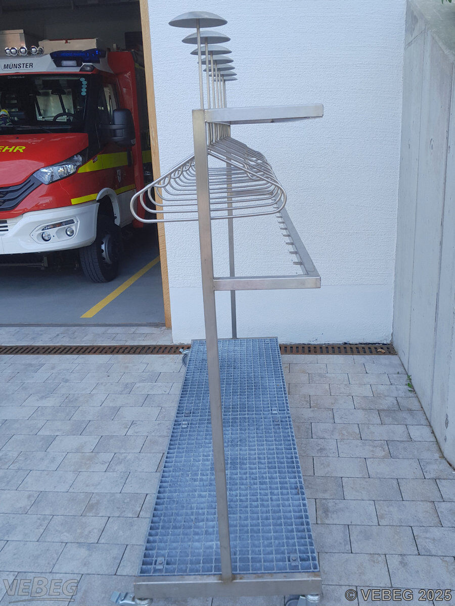 1-reihig, mit Bügel und Helmhalter, Stiefelgitter verzinkt, rollbar.