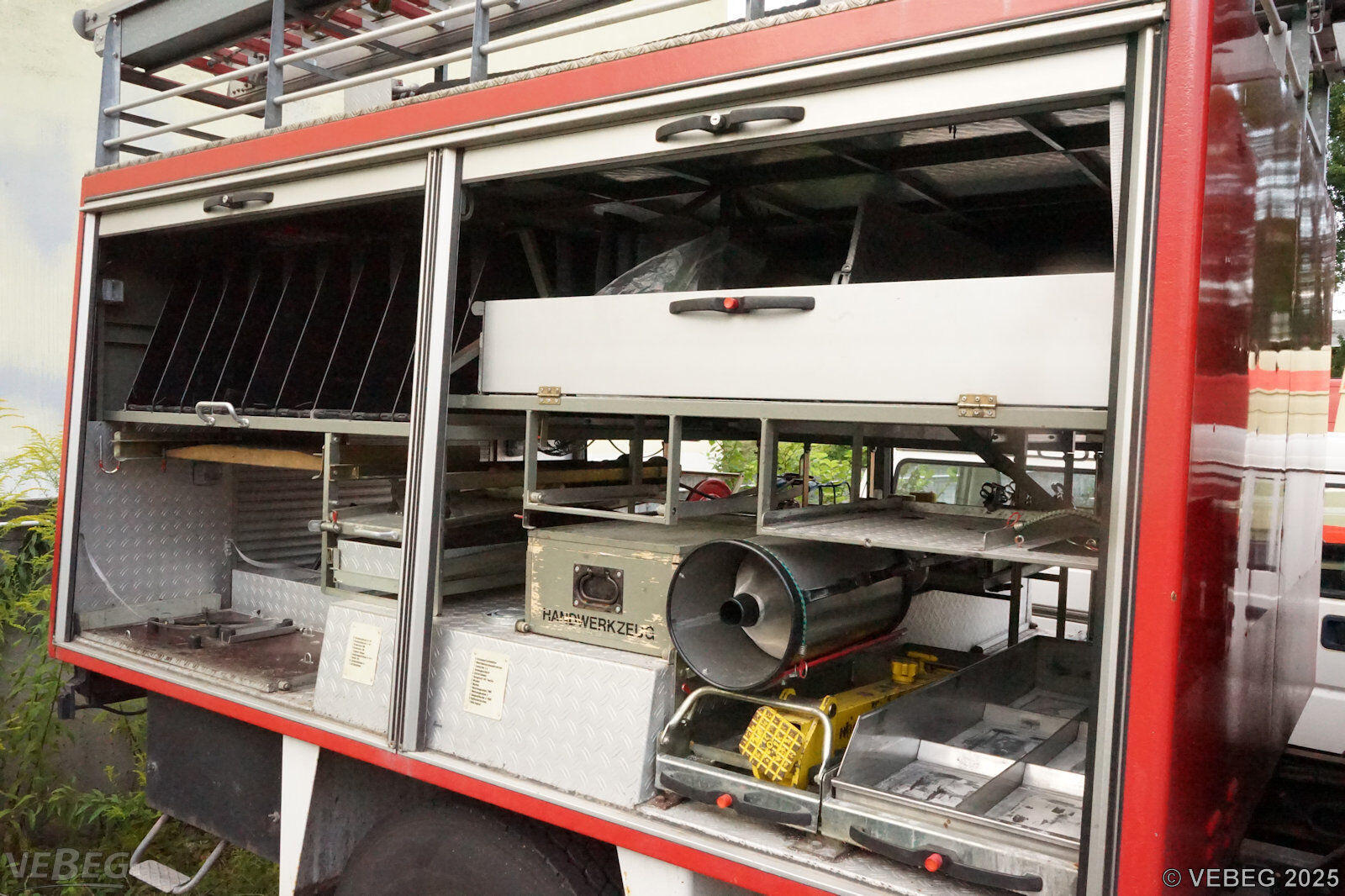 Motorleistung 121 kW; Doppelkabine, Kofferaufbau mit Rollläden, Vorbaupumpe Ziegler, AHK; mit Teilen der feuerwehrtechnischen Beladung;