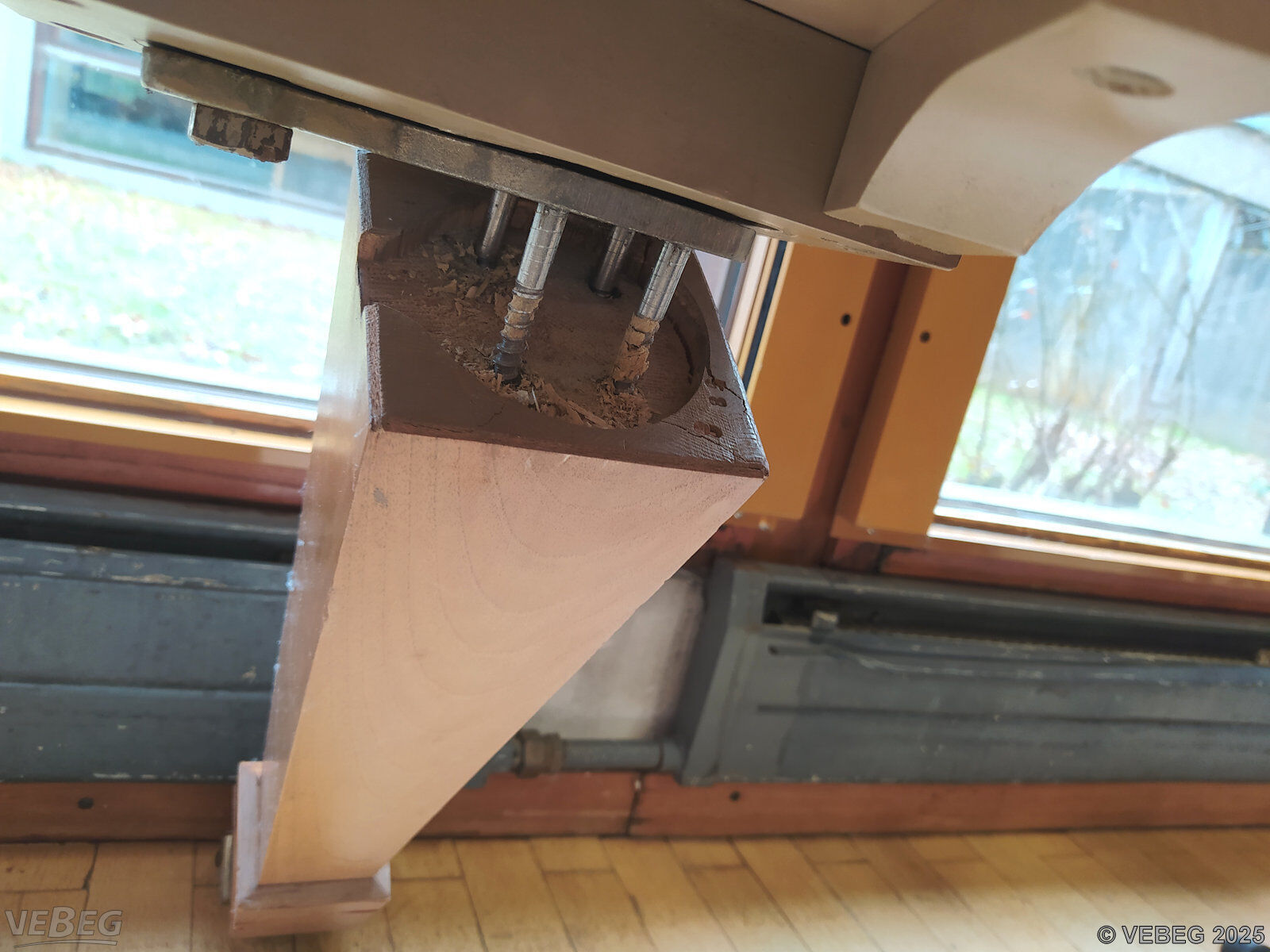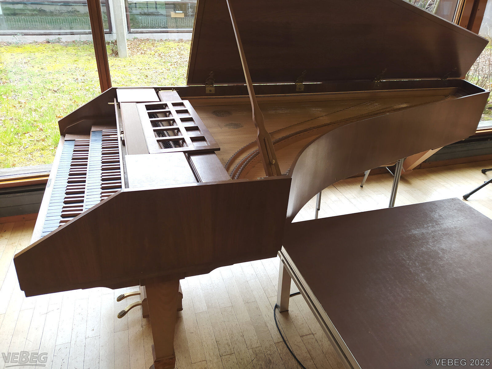 das Cembalo muss für den Abtransport auf die Seite gelegt und die Beine abgeschraubt werden.