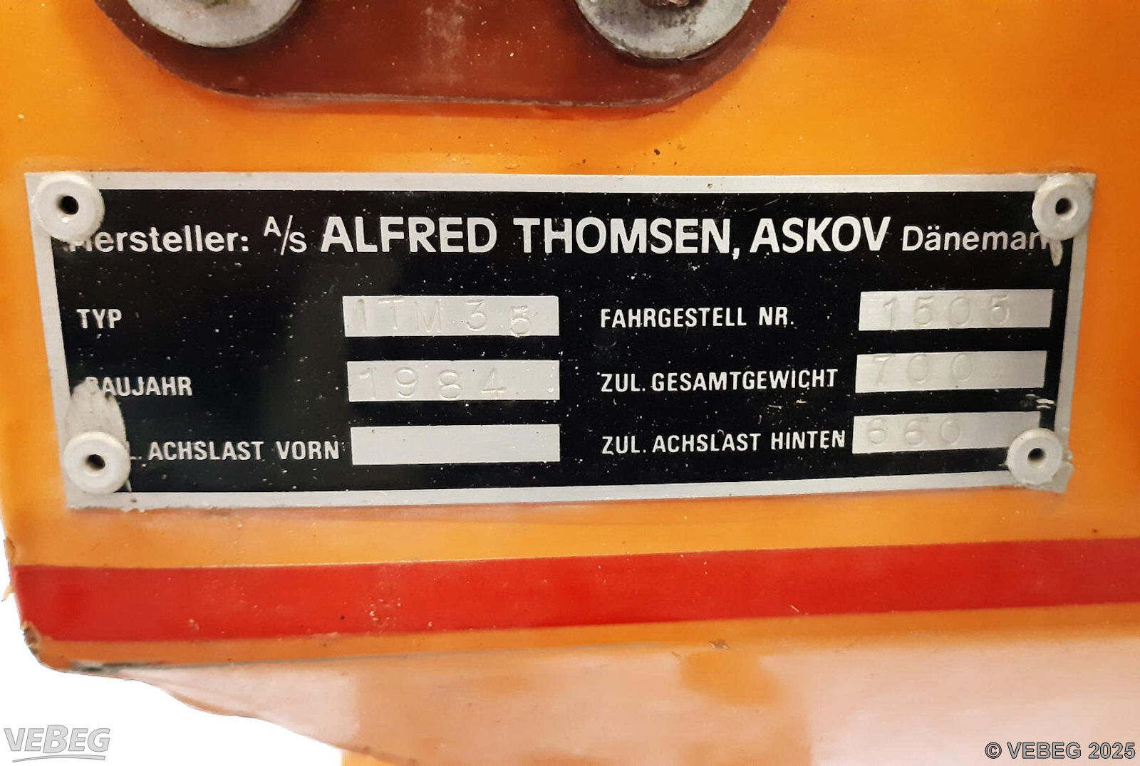 Baujahr 1984, S/N 1505; zul. Gesamtgewicht 700 kg; Reifen abgefahren.