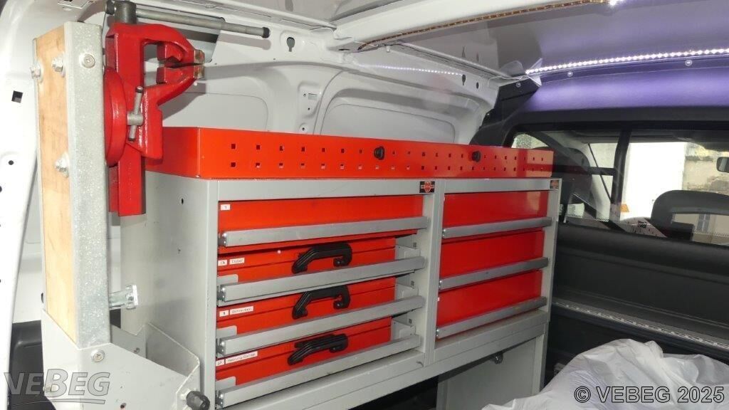 Motorleistung 66 kW, Euro 5; Trennwand mit Fenster, Schubladen-Regal mit Schraubstock, Einparkhilfe hinten, Klimaanlage, Radio; zusätzlich: 4 Sommerreifen auf Felgen;