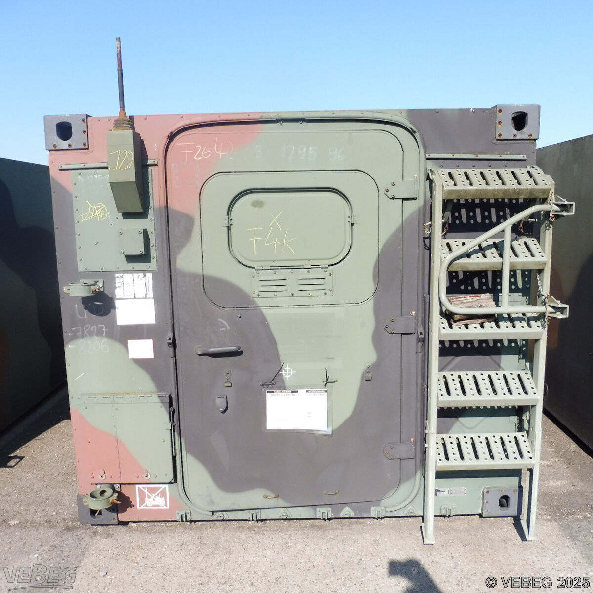 BemerkungenTermine für Besichtigung sind mit der zuständigen Lagerortdienststelle verpflichtend vorab per E-Mail unter BwDpSuedMatLgrKARLgrBer@bundeswehr.org zu vereinbaren.Der Zutritt ist nur für berechtigte Personen mit gültigem Ausweisdokument möglich. Auf dem gesamten Gelände besteht striktes Film- und Fotografierverbot. Es sind keine Tiere auf dem Gelände erlaubt. Für bestimmte Herkunftsländer kann der Zutritt zum Bundeswehrgelände untersagt sein (siehe Staatenliste). Ausfuhrgenehmigungspflichtig [Info] .Lagerhilfsmittel sind Eigentum der Dienststelle. Keine Verladehilfe möglich. Die Rechnungsstellung erfolgt zuzüglich der gesetzlichen Umsatzsteuer. GebotsbasisStückBitte beachten Sie auch die Hinweise und Bedingungen im Vorspann zu dieser Ausschreibung: Die von der VEBEG angebotenen Waren stammen aus Aussonderungen ihrer Auftraggeber. Einzelheiten zum Zustand der jeweiligen Waren entnehmen Sie bitte den Lostexten. Insbesondere müssen technische Arbeitsmittel und Verbraucherprodukte i.S. des Geräte- und Produktsicherheitsgesetzes vor ihrer Verwendung instandgesetzt oder wiederaufgearbeitet werden. Zusätzlich verweisen wir ausdrücklich auf Abschnitte B und G unserer Allgemeinen Geschäftsbedingungen (AGB). Waren die nach Einschätzung der VEBEG der Ausfuhrgenehmigungspflicht unterliegen, sind mit Verweis auf die Punkte E3 und E4 unserer AGB entsprechend gekennzeichnet.Zum Gebotspreis kommt die gesetzliche Umsatzsteuer hinzu. Die Differenzbesteuerung gemäß § 25a UStG wird nur angewendet, wenn dies ausdrücklich in der jeweiligen Ausschreibung angegeben ist. | Lagerort / StandortBundeswehrBwDp Süd PFU Verwertung MatLgr 2 Koordinaten 49.064088, 8.401188 Labor-Service-Straße Tel.: 0721 12081-0 - BwDpSuedMatLgrKARLgrBer@bundeswehr.org 76149 Karlsruhe-Neureut |