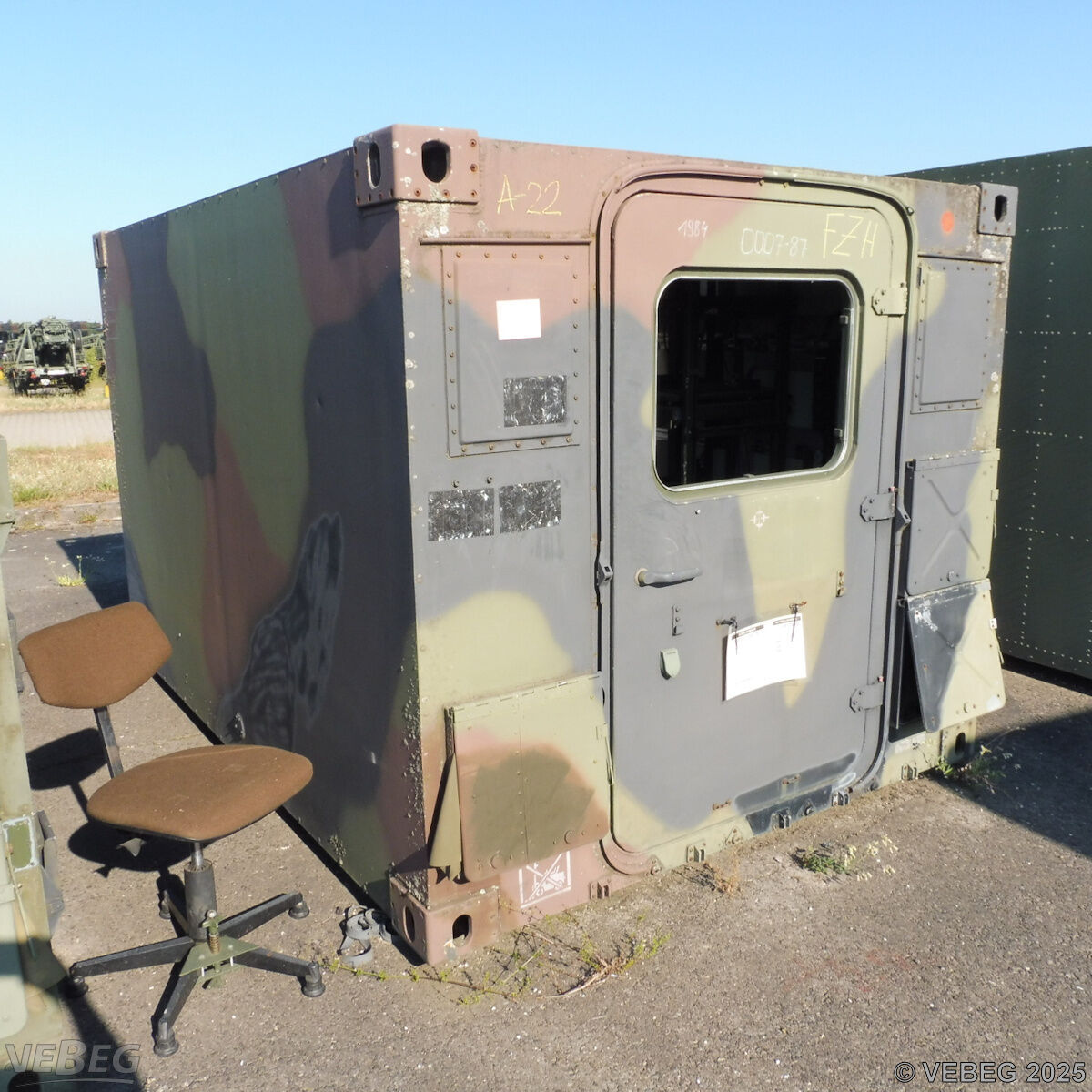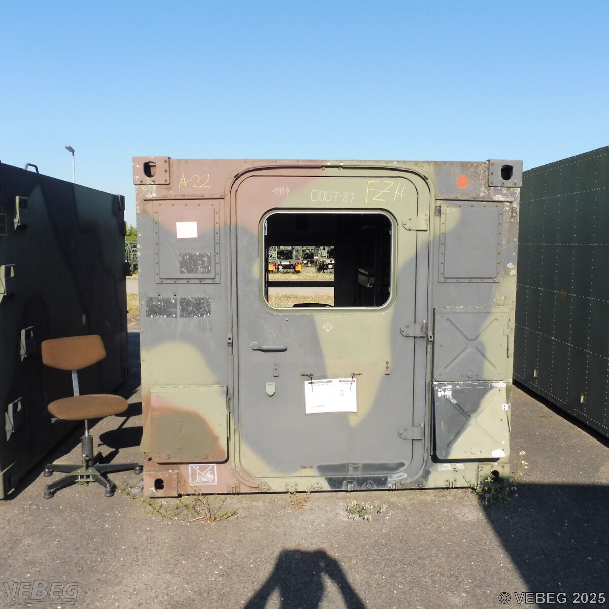 BemerkungenTermine für Besichtigung sind mit der zuständigen Lagerortdienststelle verpflichtend vorab per E-Mail unter BwDpSuedMatLgrKARLgrBer@bundeswehr.org zu vereinbaren.Der Zutritt ist nur für berechtigte Personen mit gültigem Ausweisdokument möglich. Auf dem gesamten Gelände besteht striktes Film- und Fotografierverbot. Es sind keine Tiere auf dem Gelände erlaubt. Für bestimmte Herkunftsländer kann der Zutritt zum Bundeswehrgelände untersagt sein (siehe Staatenliste). Ausfuhrgenehmigungspflichtig [Info] .Lagerhilfsmittel sind Eigentum der Dienststelle. Keine Verladehilfe möglich. Die Rechnungsstellung erfolgt zuzüglich der gesetzlichen Umsatzsteuer. GebotsbasisStückBitte beachten Sie auch die Hinweise und Bedingungen im Vorspann zu dieser Ausschreibung: Die von der VEBEG angebotenen Waren stammen aus Aussonderungen ihrer Auftraggeber. Einzelheiten zum Zustand der jeweiligen Waren entnehmen Sie bitte den Lostexten. Insbesondere müssen technische Arbeitsmittel und Verbraucherprodukte i.S. des Geräte- und Produktsicherheitsgesetzes vor ihrer Verwendung instandgesetzt oder wiederaufgearbeitet werden. Zusätzlich verweisen wir ausdrücklich auf Abschnitte B und G unserer Allgemeinen Geschäftsbedingungen (AGB). Waren die nach Einschätzung der VEBEG der Ausfuhrgenehmigungspflicht unterliegen, sind mit Verweis auf die Punkte E3 und E4 unserer AGB entsprechend gekennzeichnet.Zum Gebotspreis kommt die gesetzliche Umsatzsteuer hinzu. Die Differenzbesteuerung gemäß § 25a UStG wird nur angewendet, wenn dies ausdrücklich in der jeweiligen Ausschreibung angegeben ist. | Lagerort / StandortBundeswehrBwDp Süd PFU Verwertung MatLgr 2 Koordinaten 49.064088, 8.401188 Labor-Service-Straße Tel.: 0721 12081-0 - BwDpSuedMatLgrKARLgrBer@bundeswehr.org 76149 Karlsruhe-Neureut |