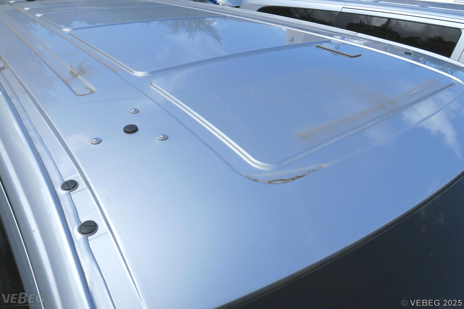 Ausbauspuren Funk-/Sondersignalanlage und technische Einsatzausstattung, Steinschläge im Frontbereich, Schiebetür und Seitenteil Kratzer, Lackschäden durch Folienentfernung, Gebrauchsspuren, Standschäden, alters- und nutzungsbedingter Verschleiß, HU 09/25.